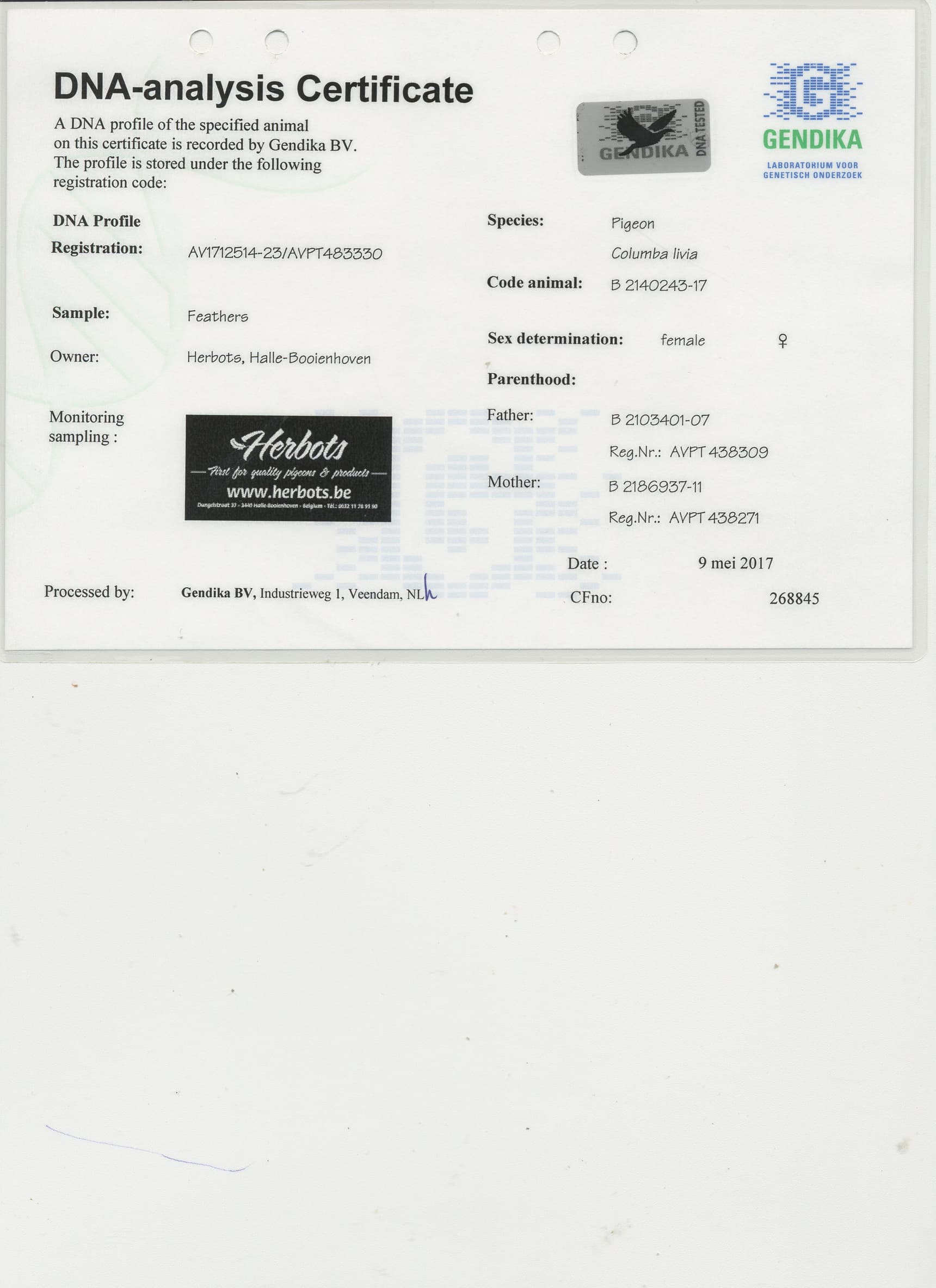 Direct daughter and granddaughter of national ace KBDB and base breeder “Yvan”