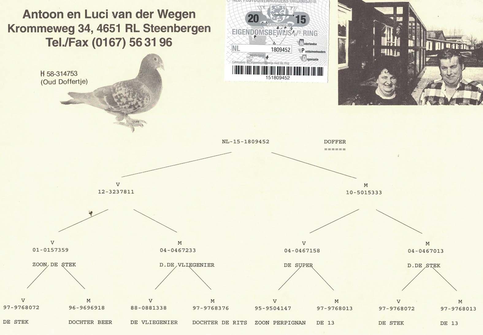 Kweker: 100% VAN DER WEGEN A. & L. 100% 纯范德维根血系