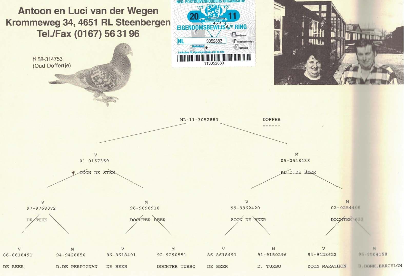 Granddaughter “Witpen Barcelona”, winner of 10th Nat. Barcelona 7,073b. – 28th Internat. Barcelona 23,708b. – 36th Nat. Narbonne 2,563b.