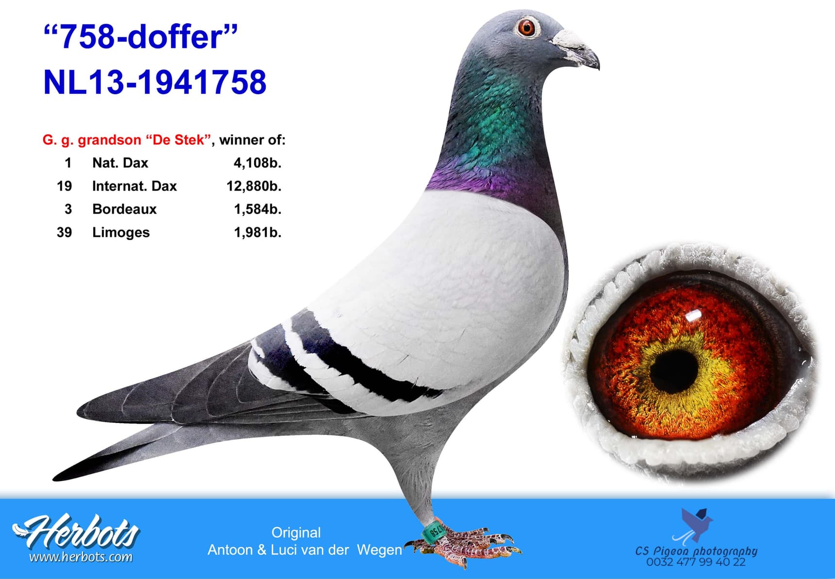 Grandson “De Europeaan”, winner of 32nd Nat. Barcelona 8,042b. - 79th Internat. Barcelona 27,669b. – 49th Nat. Perpignan 6,507b. – 54th Nat.Barcelona 7,016b.