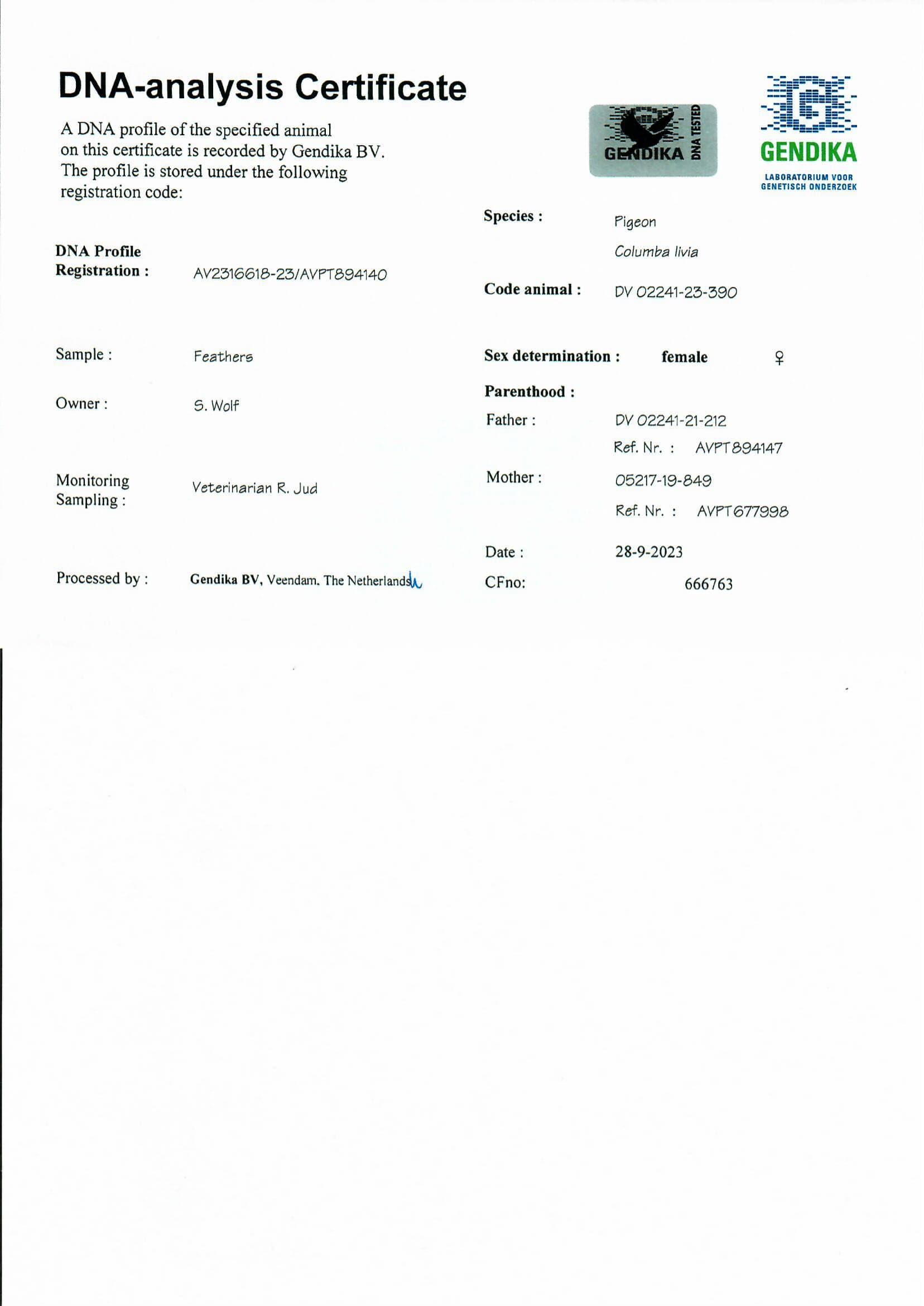 Direct son “Der 1113” x “Daughter Romario”