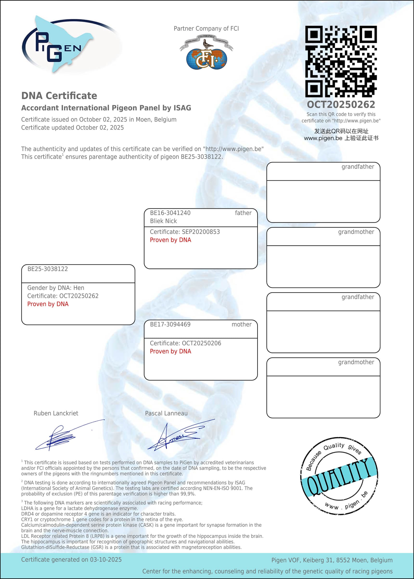 Super daughter out base couple “Georges” x “Mieke”