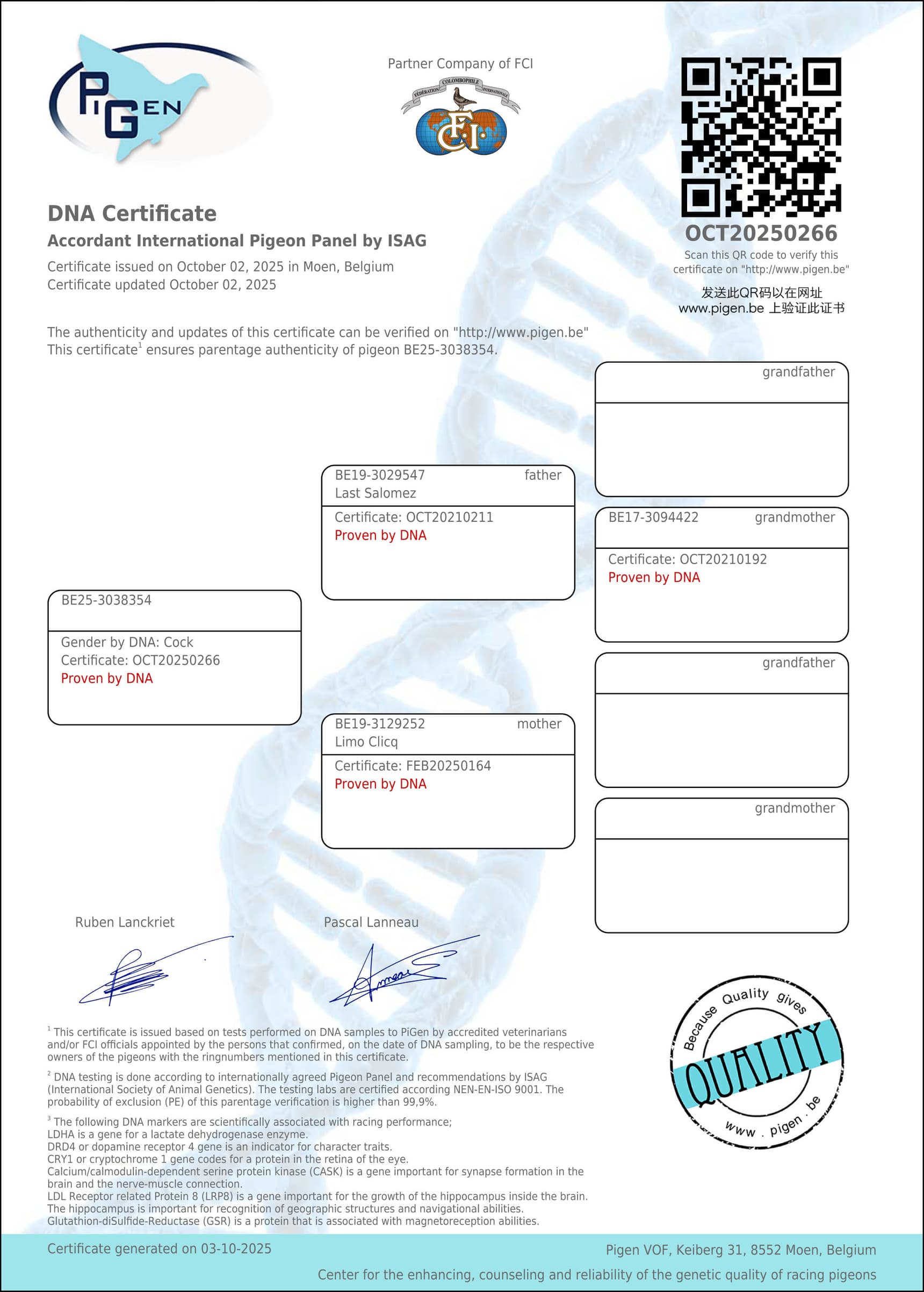 “Cesar”: 3rd Prov. ace ½ Fond youngbirds KBDB ‘17