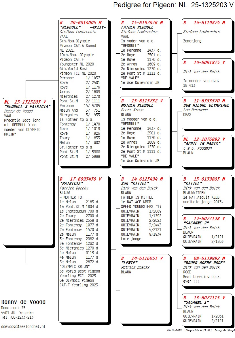 “Goede Rode” Dirk van den Bulck: Father "Kittel" 1st Nat. Acepigeon Youngster KBDB 2013