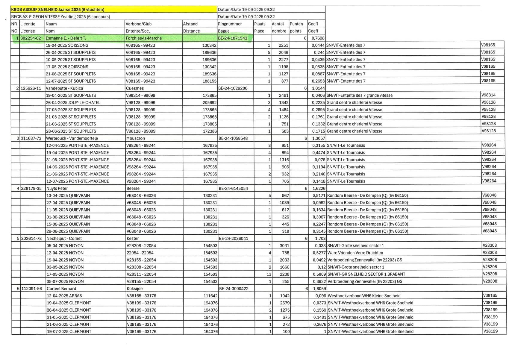 8th Best bird of Belgium on 8 national races