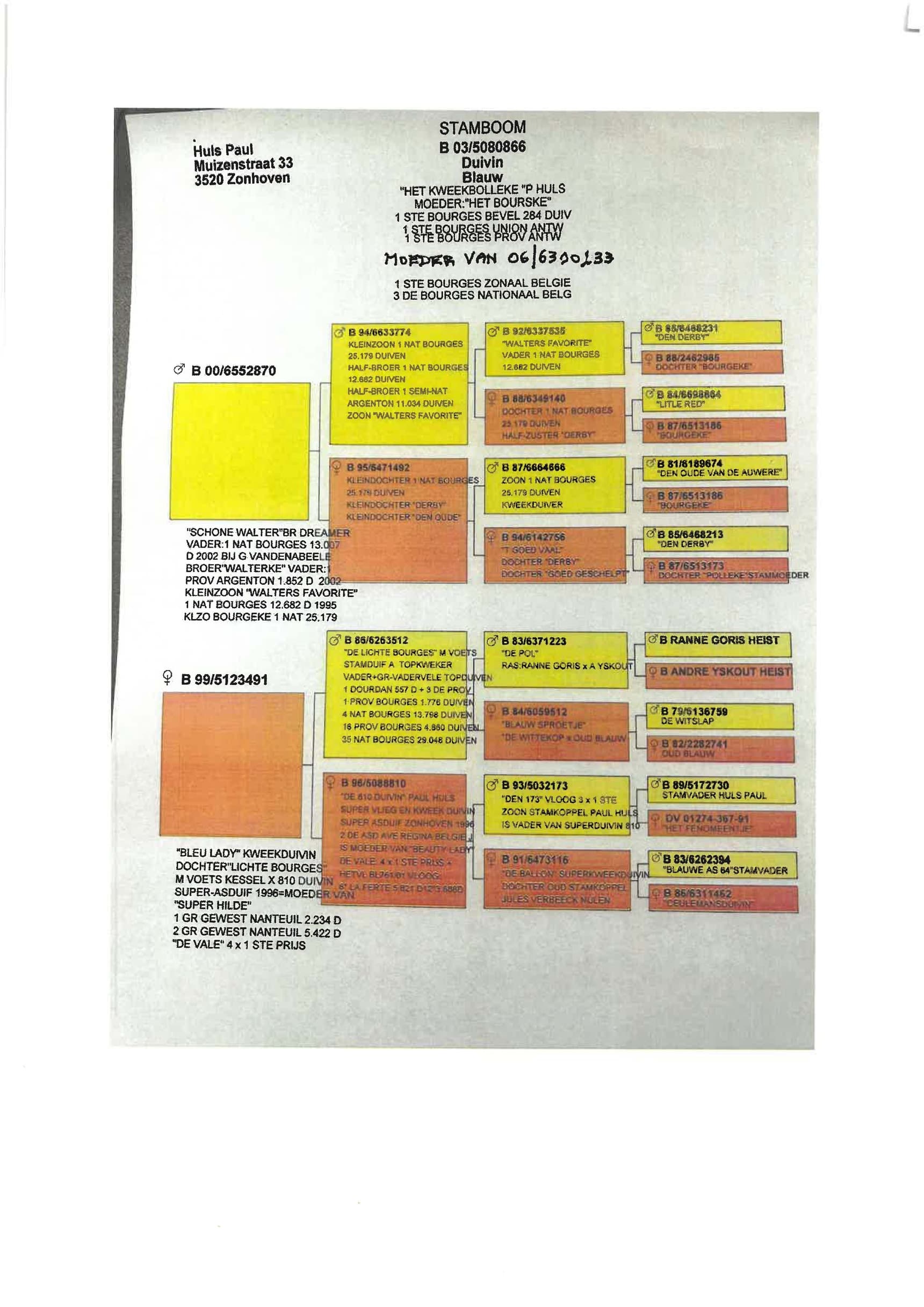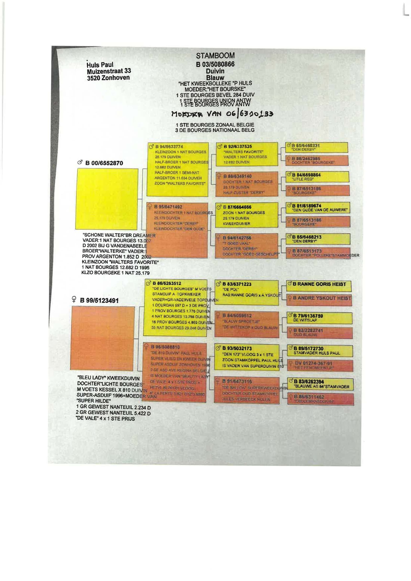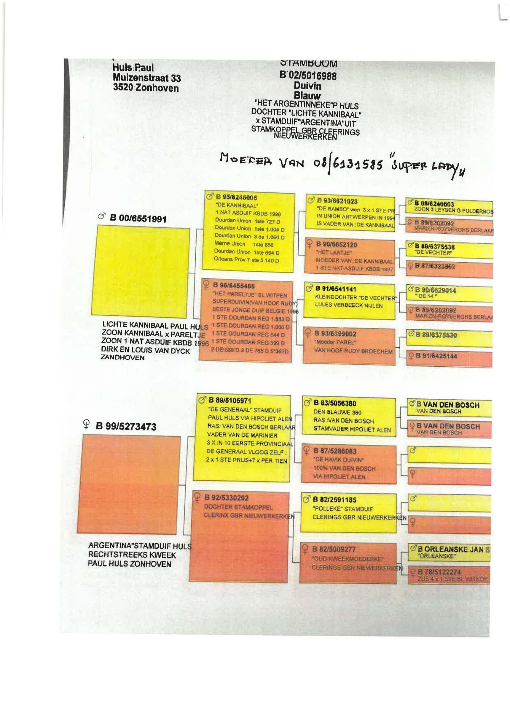 Breeding line: Tournier x Gaby Vandenabeele x Van Dyck ("Kannibaal") x Schellens ("lichte Bourges" - Voets) : via Paul Huls (see pedigrees)