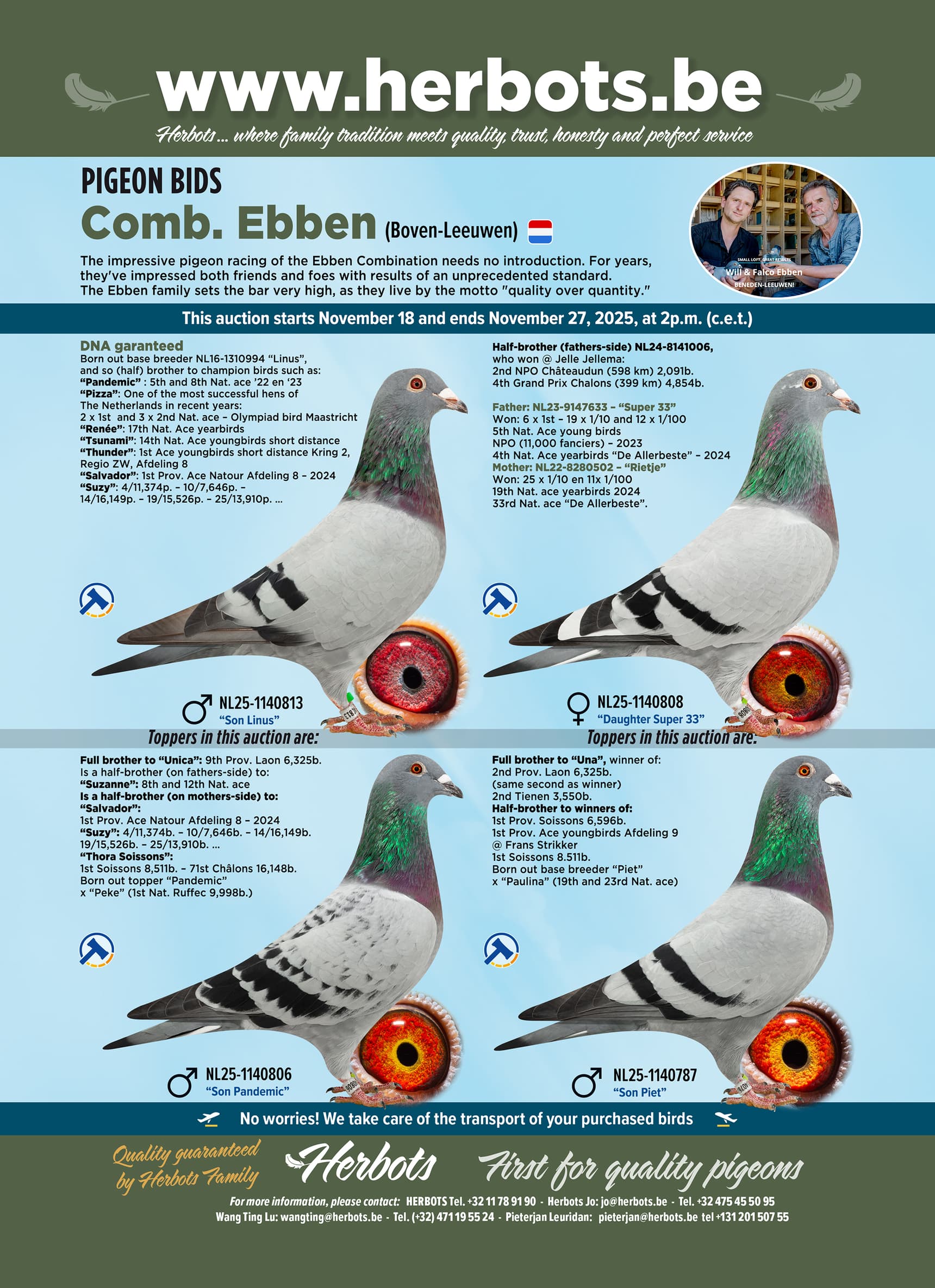 Voor deze editie van Pigeon Bids kweekte en selecteerde Falco een top groep van kwaliteitsduiven allen geboren uit zijn beste kwekers.