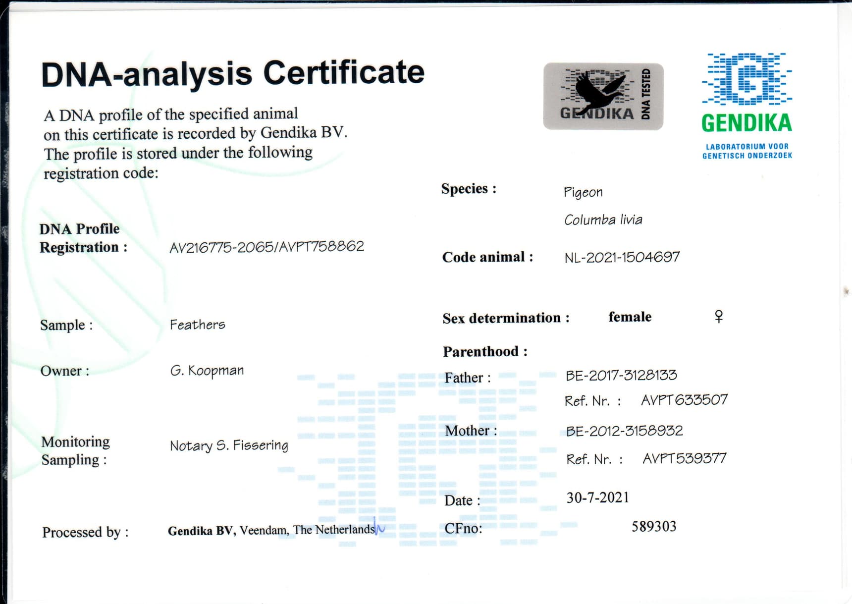 Direct daughter “Barcelona duivin”, winner of: