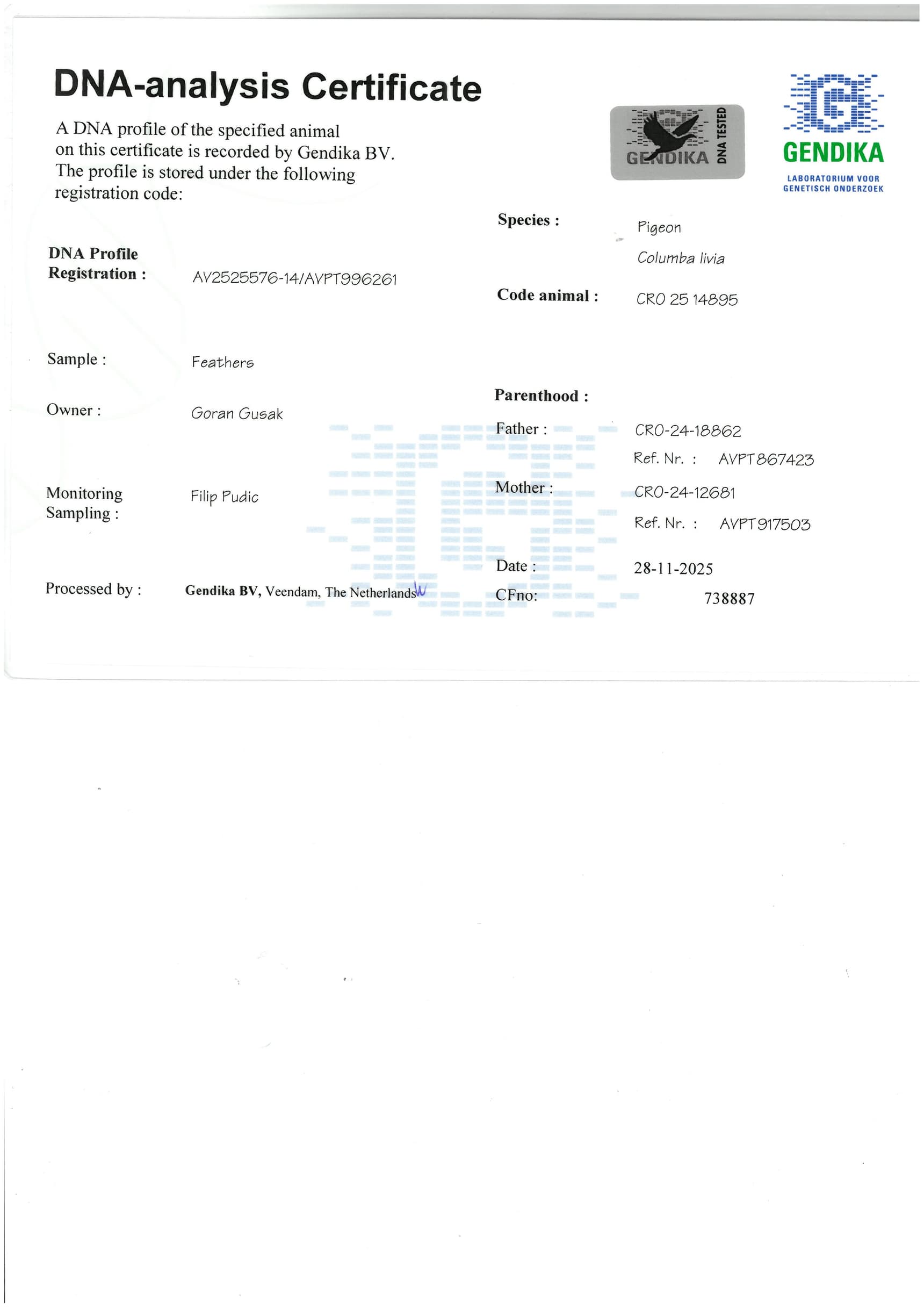“DV13-1274491” (daughter Olympiad bird “Der 16”)