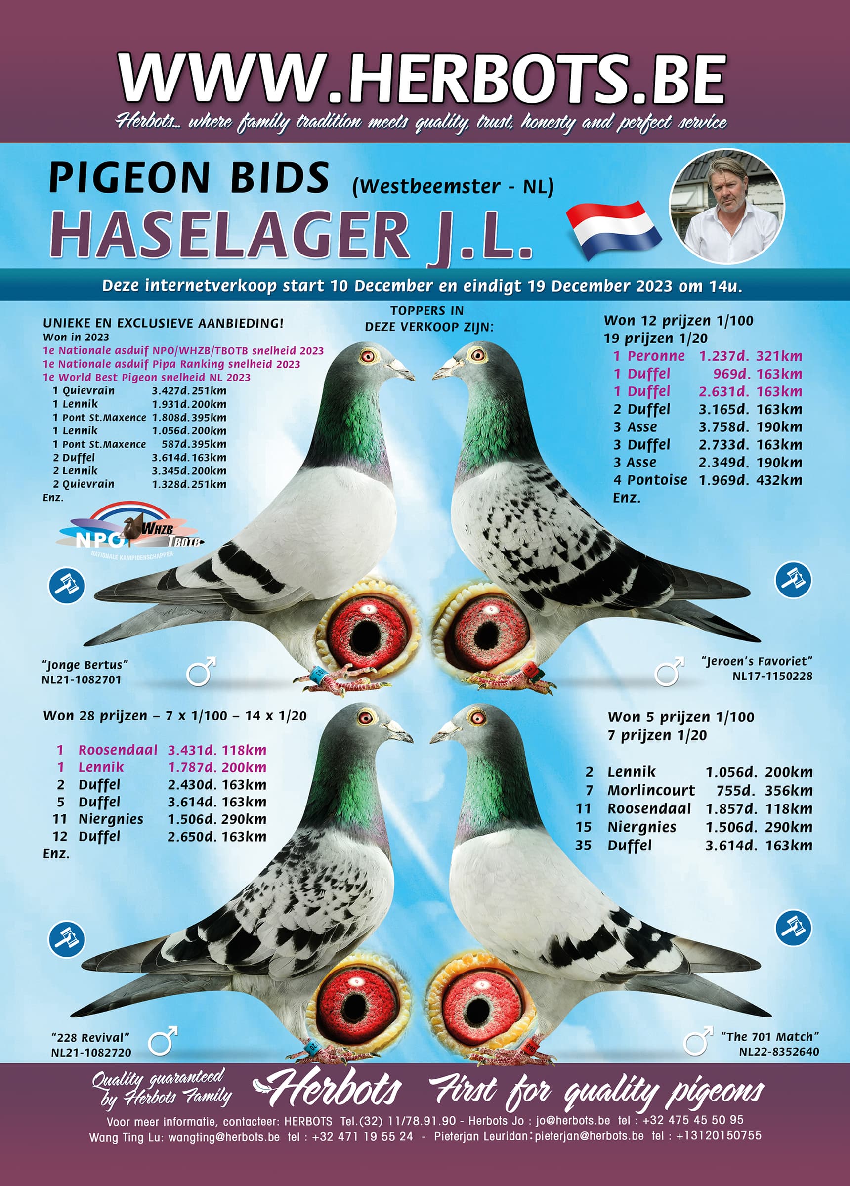 pigeon bids haselager jasper part 4 : 1st nat. ace short distance nl 2023