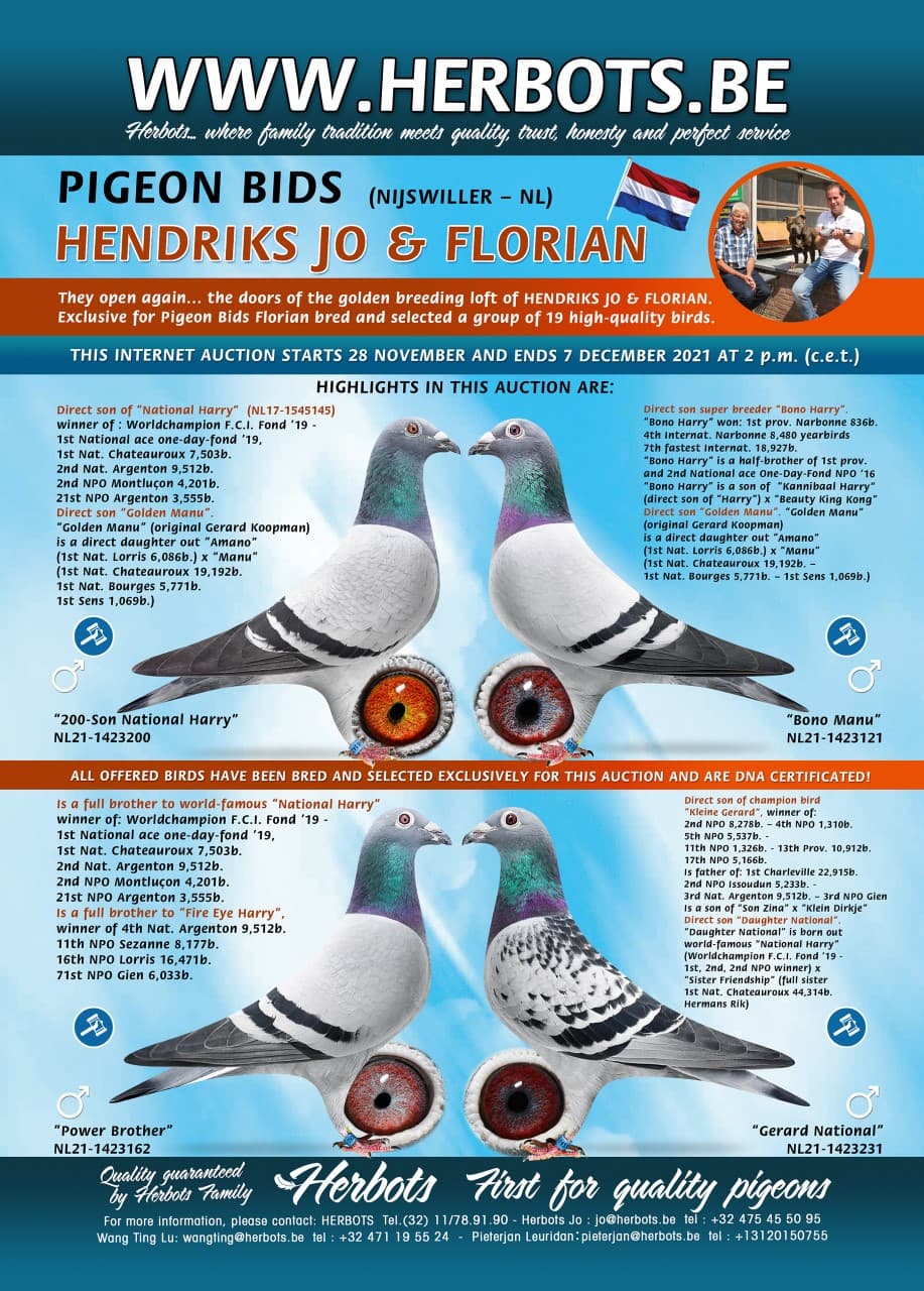 pigeon bids hendriks jo & florian - 2021