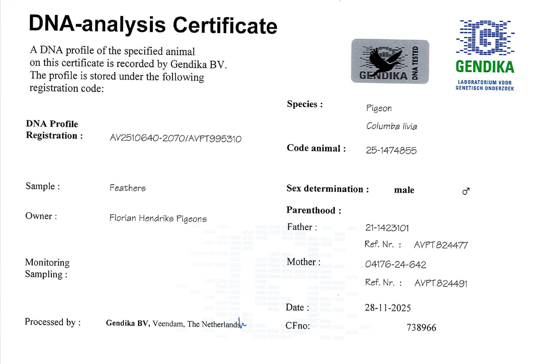 Granddaughter “Olympic 495”, winner of: 1st/973b. – 2nd/1,625b. – 2nd/3,015b. – 2nd/1,124b. - 2nd/928b. – 3rd/1,657b. – 3rd/534b. – 3rd/2,250b.