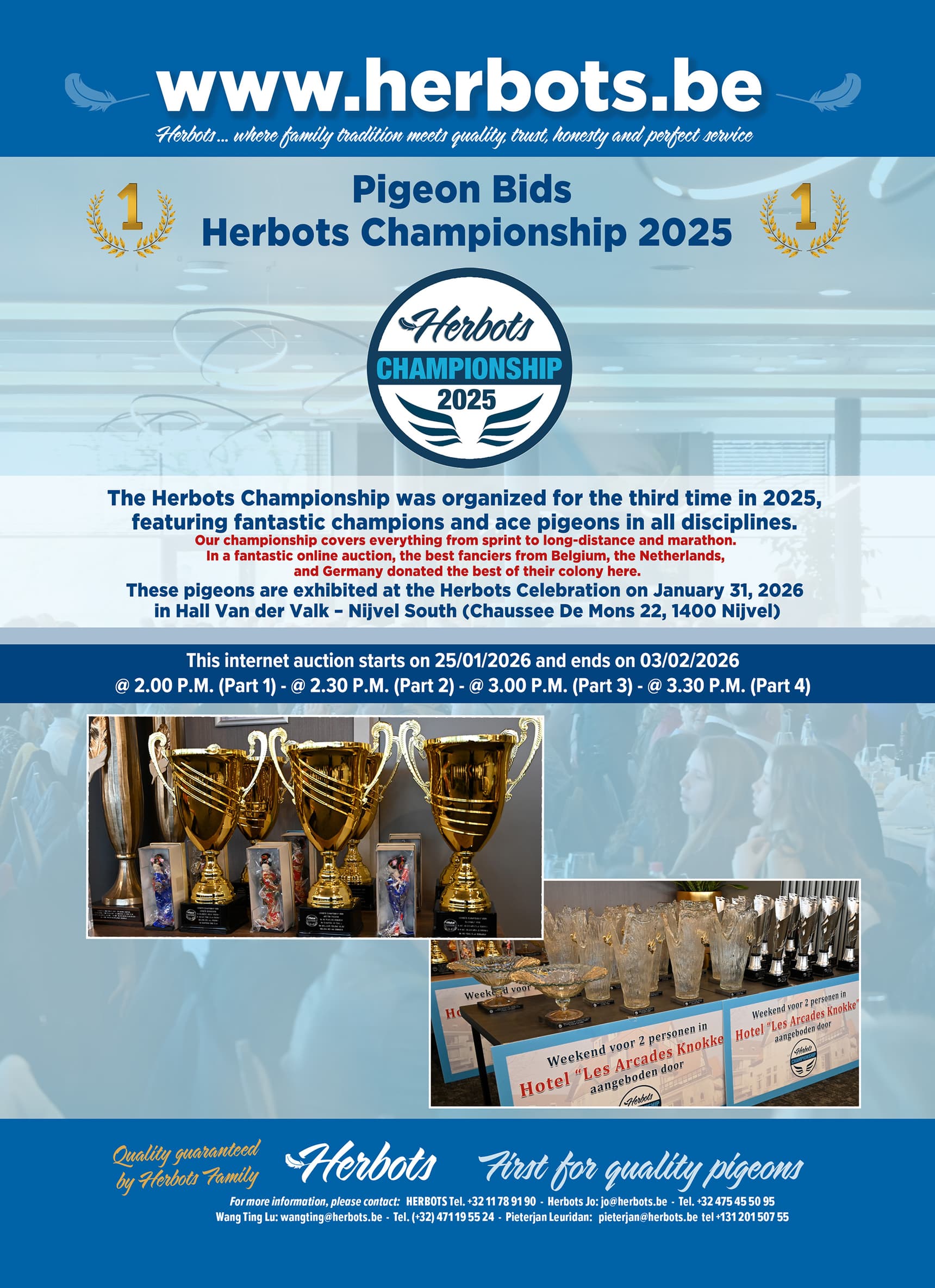 Het Herbots Kampioenschap werd in 2025 voor de derde keer georganiseerd en presenteerde fantastische kampioenen en topduiven op in alle disciplines.