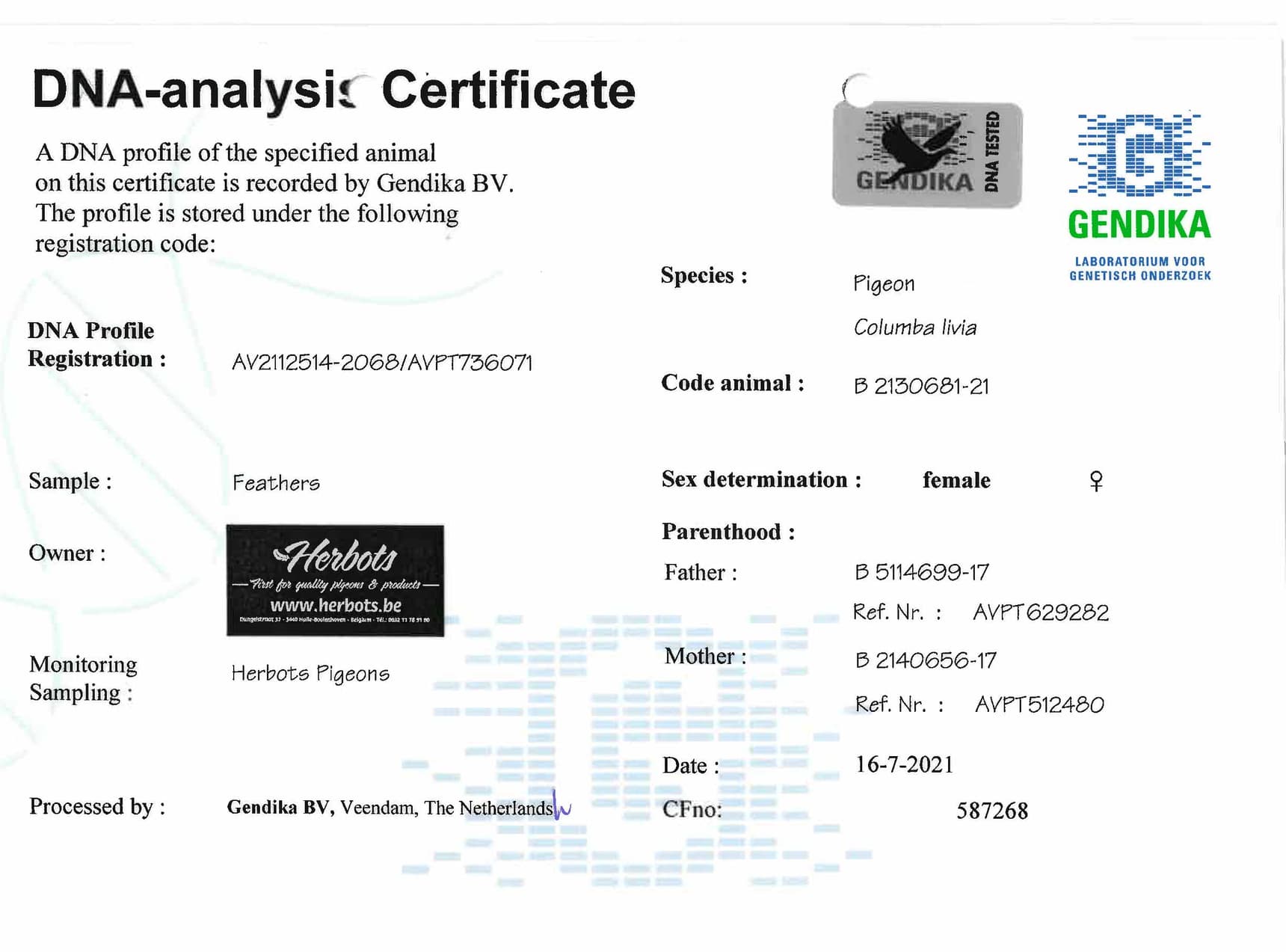 Mother: BE2140656-17 Daughter to YVANKE
