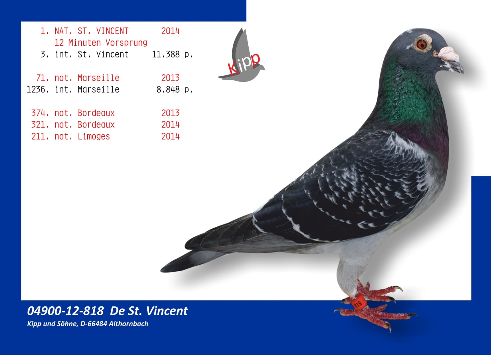 Is father to 1st Internat. ace IGW 2020- 3rd internat. Marseille 2,540 hens, 7th Internat. Marseille 8,253b.