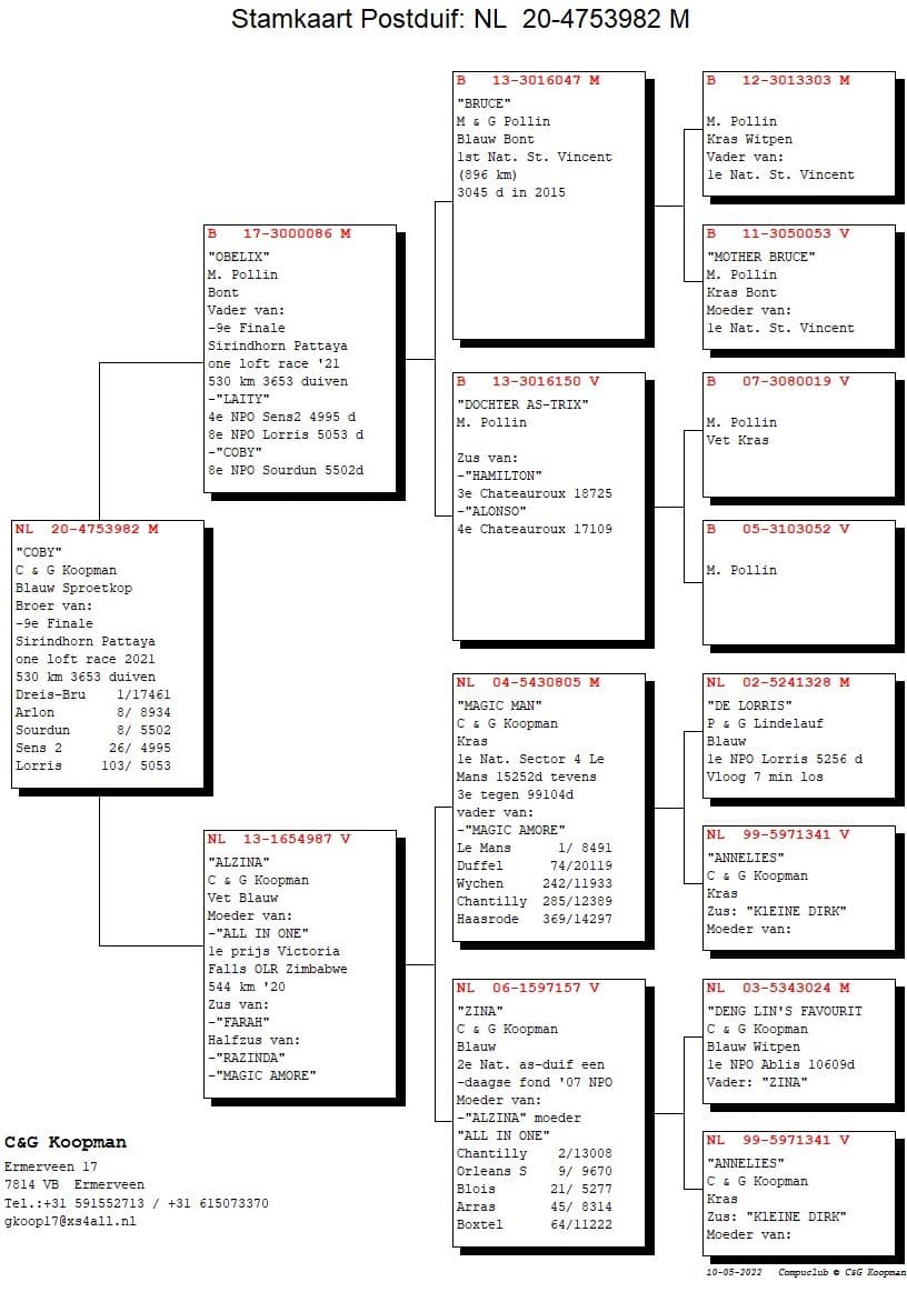 Daughter out “Blue Energy” (half-brother “Magic Man” and “Amoré”) x “Miss Jenjira” (1st NPO Breuil Le Vert 4,564b. - 16th NPO Pithiviers 4,494b. – 74th Boxtel 10,270b.)