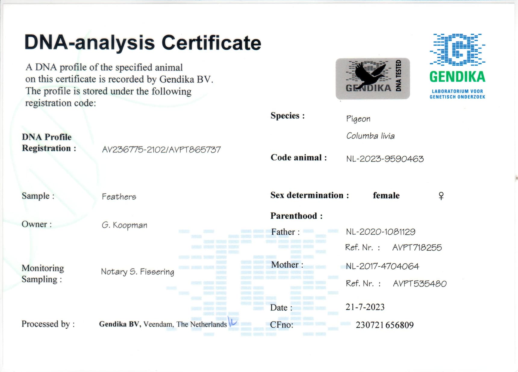 Direct daughter “Pricus” (son “Gladiator” – Geerinckx) x “New Hope”  (half-sister “Kleine Dirk”)