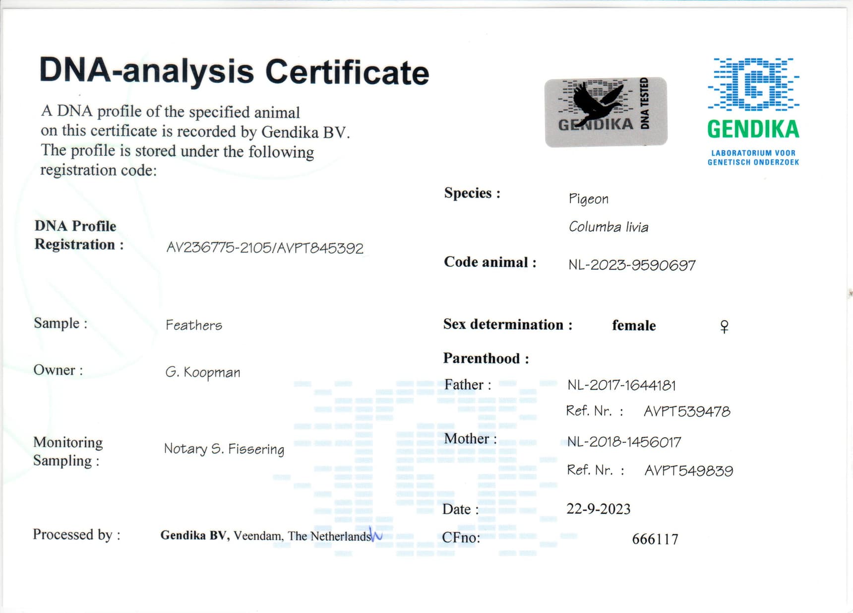 Direct daughter “Jerson” (all info see above) x “Miss Morakot” (won 1st Ravenstein 11,509b. – 23rd Strombeek 11,586b. – 43rd St Truiden 10,319b.)