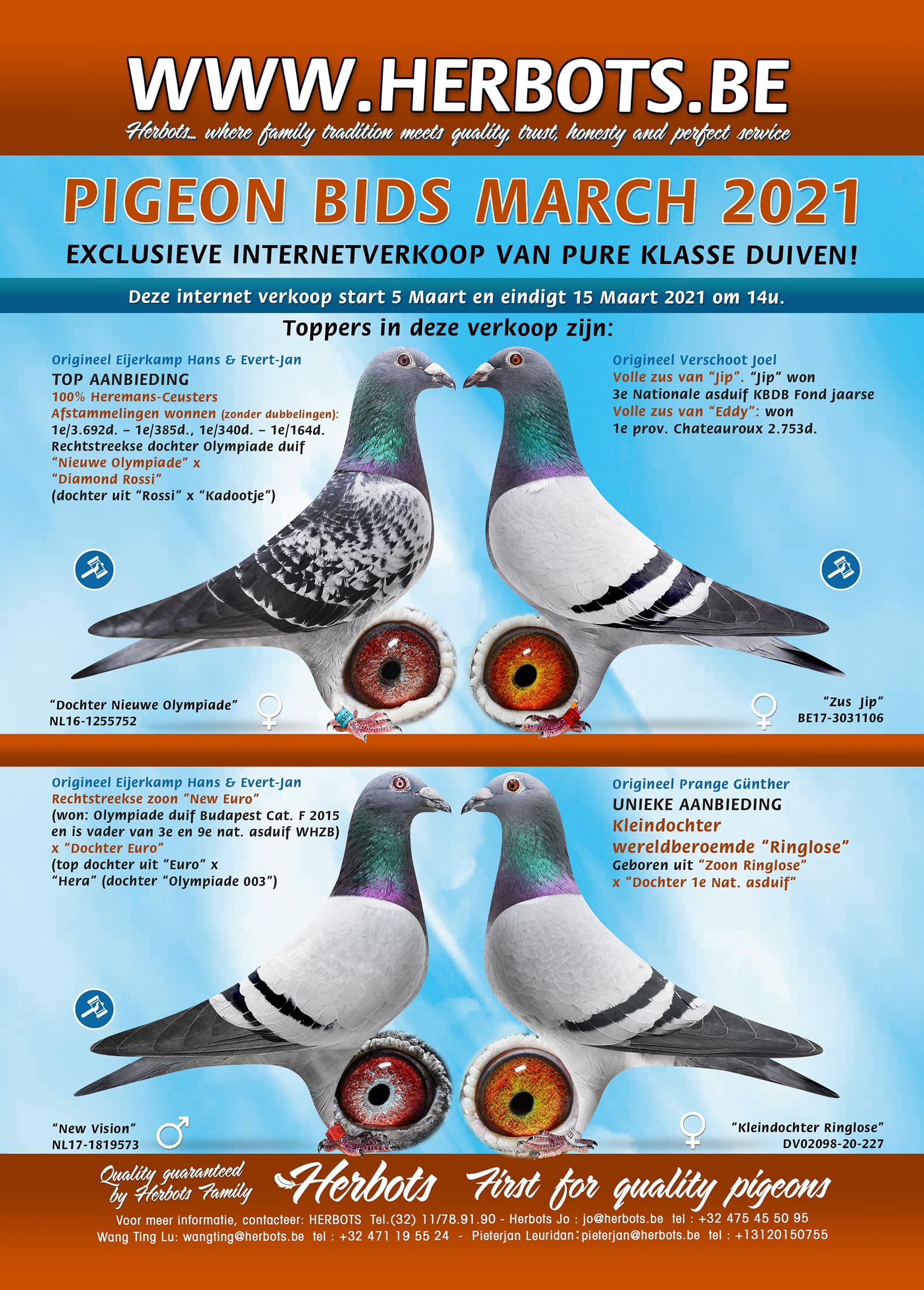 Superb auction with original champion birds of Gaby Vandenabeele, Verschoot Joel, Eijerkamp Hans & Evert-Jan, Gunter Prange, Bakker R. A., Elzinga TJ., Gevaert-Lannoo, Brinkmann Henrik,