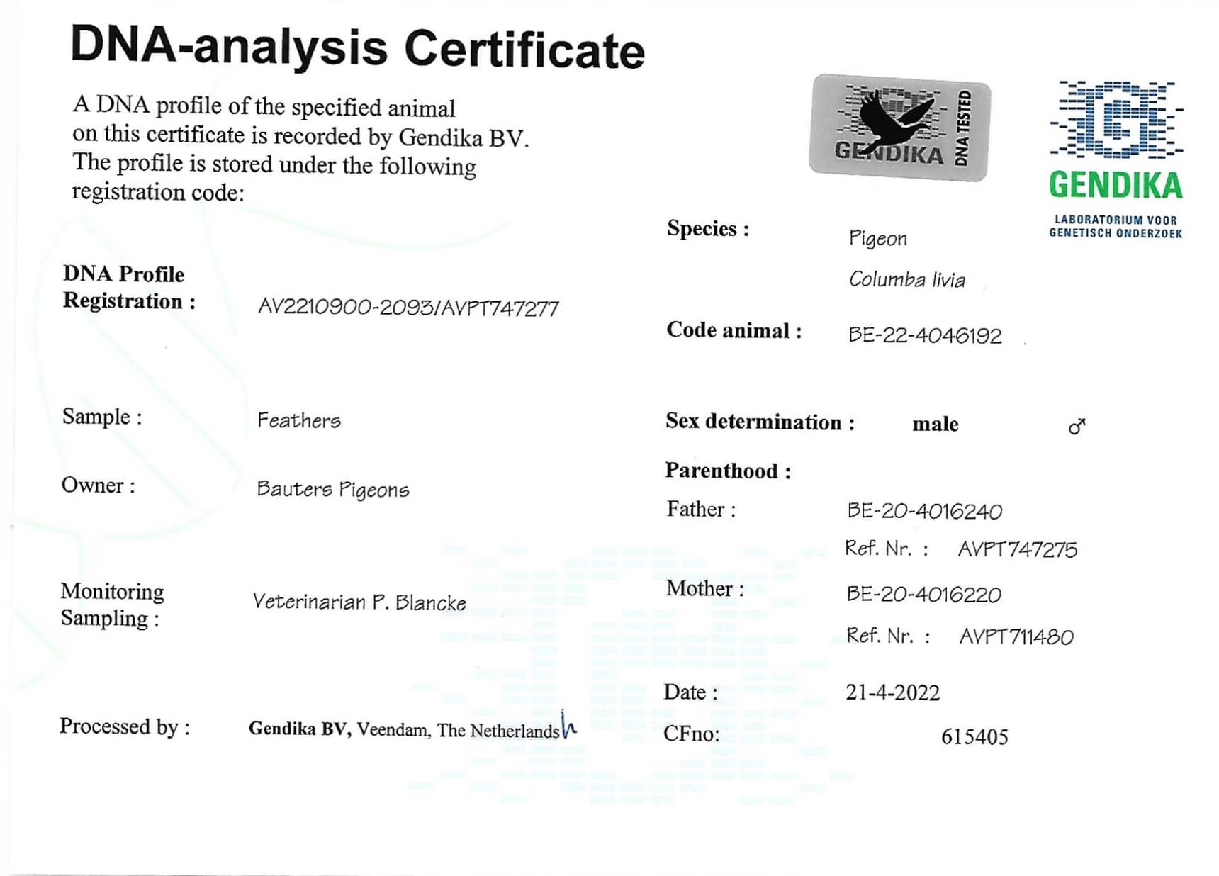 Verkoper: BAUTERS PIGEONS