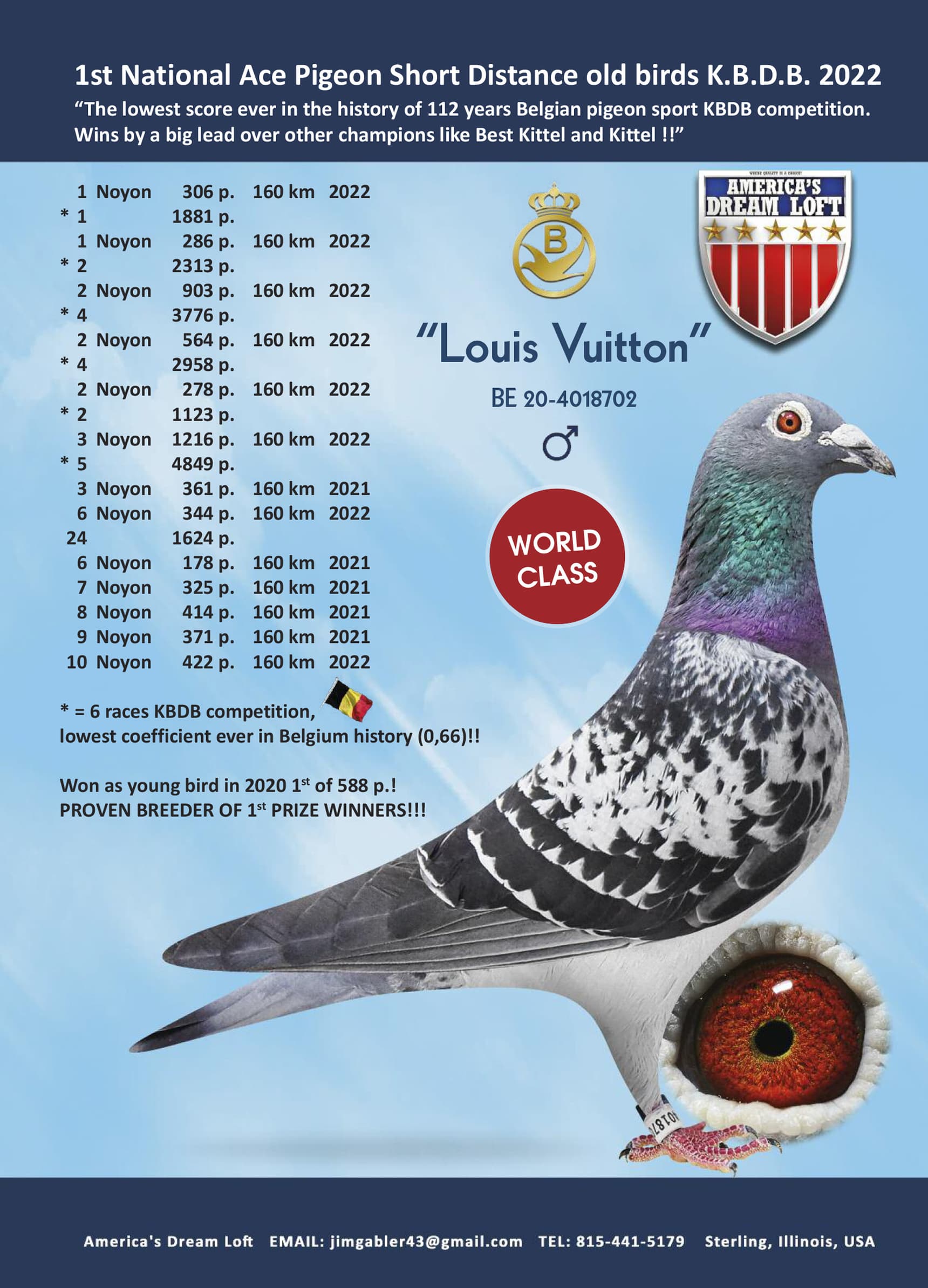 Also to 11th and 17th National ace KBDB youngbirds great middle distance ’19 and ‘20