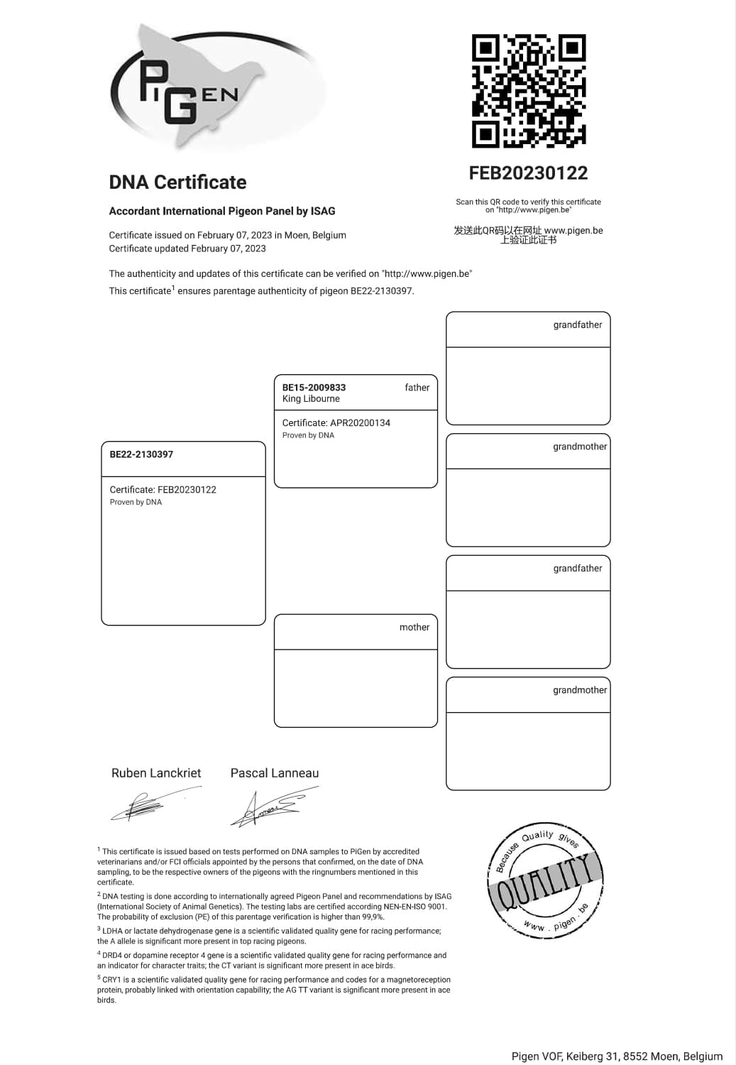 Direct son “B13-2012592” (brother 20th Nat. Valence) x “Evelien” (6th Nat. Libourne ’14)