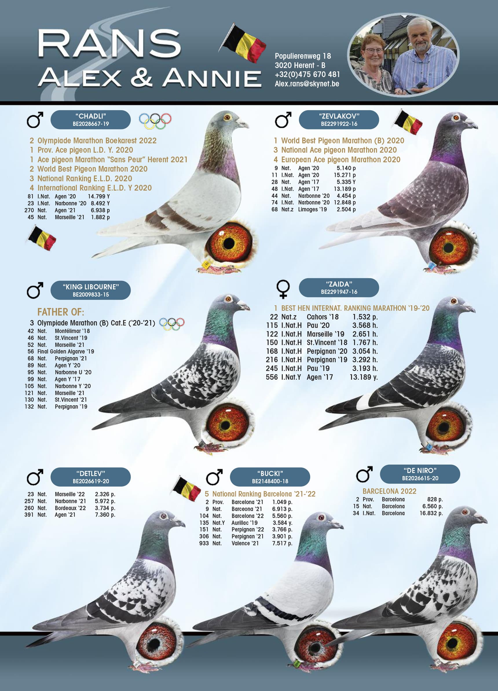 Born out “Blauwe Barcelona” (139th Nat. Barcelona ’14) x “B12-2061798” (sister 18th Nat. Perpignan)