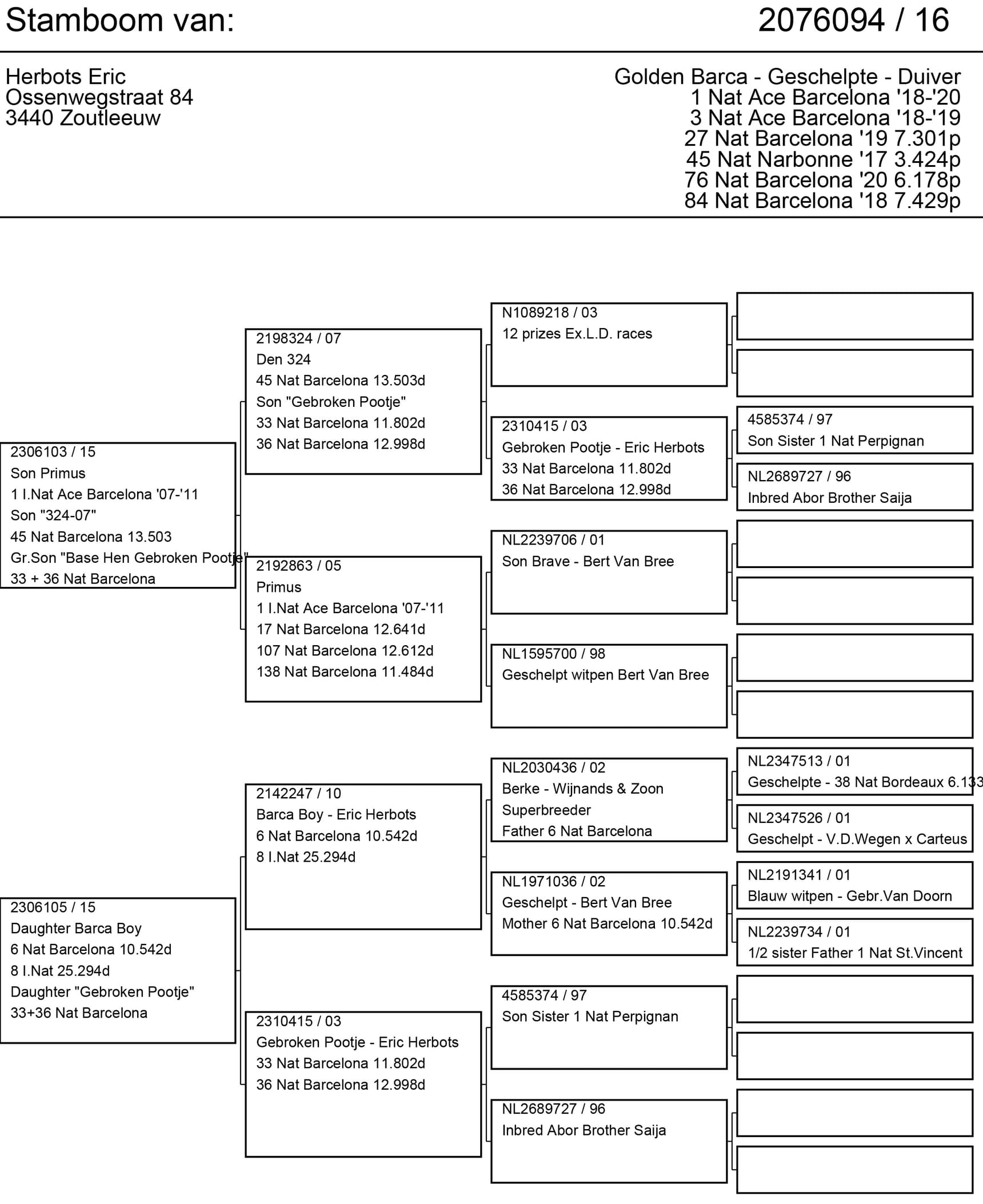 Kweker: BOONEN PIGEONS 布恩兄弟
