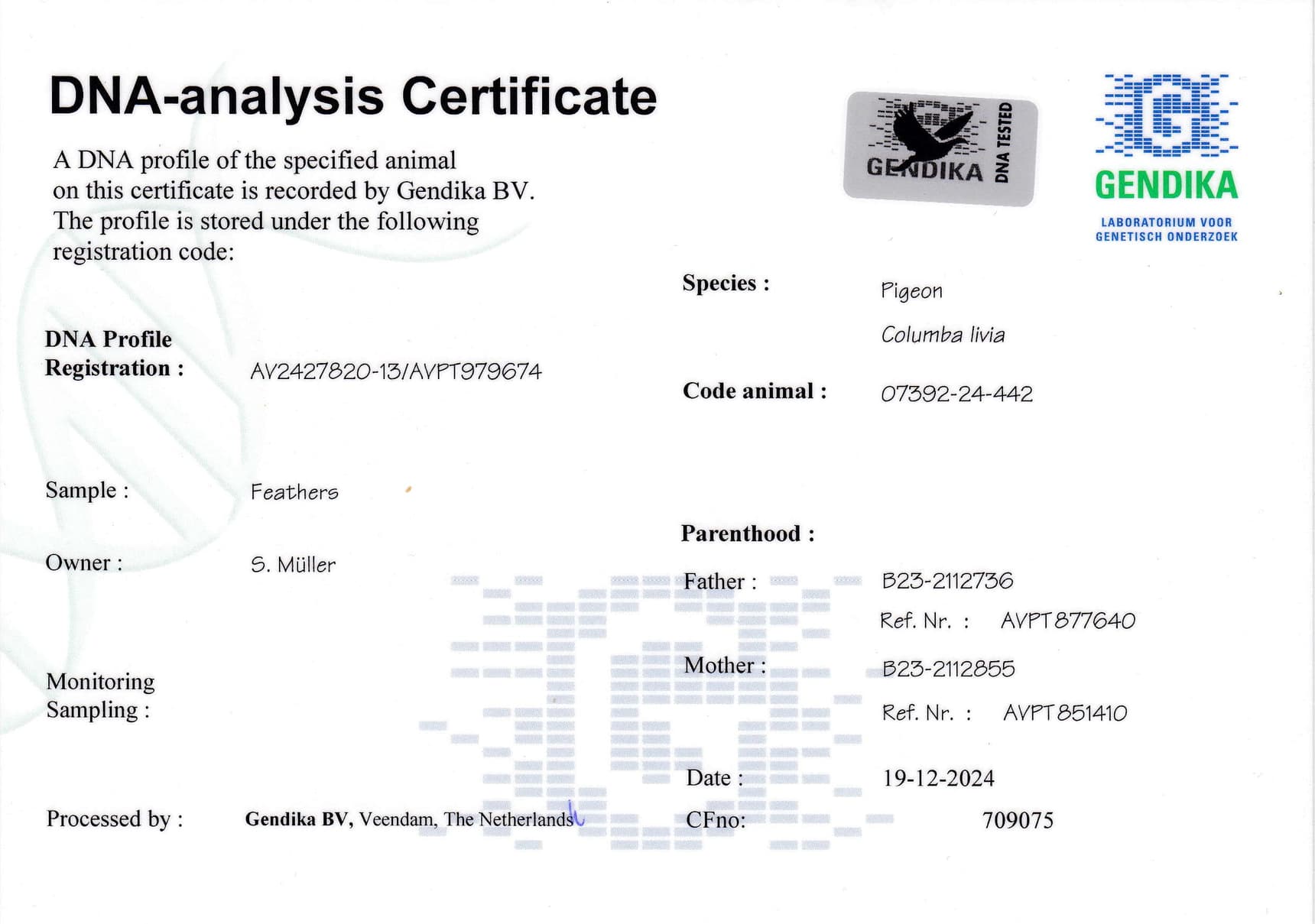 Born out “Olympic Rico” (all info see above) x “Mega Yvano” (daughter 1st Nat. ace KBDB YB)