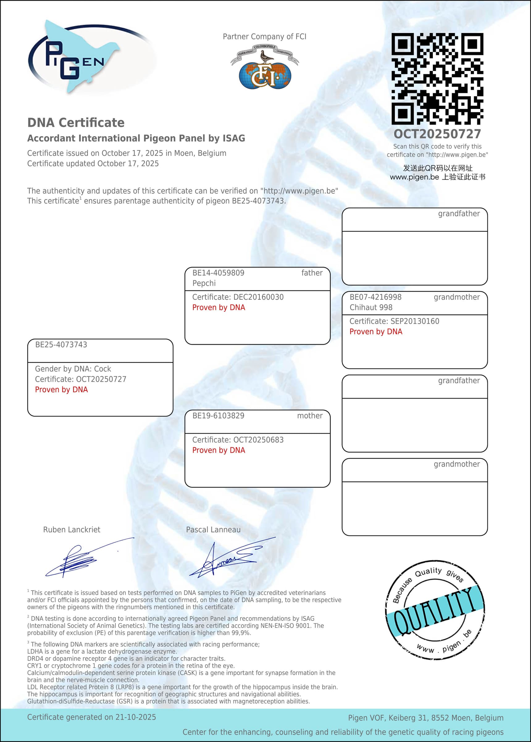 Same parents bred “B21-4074843” , who is mother to