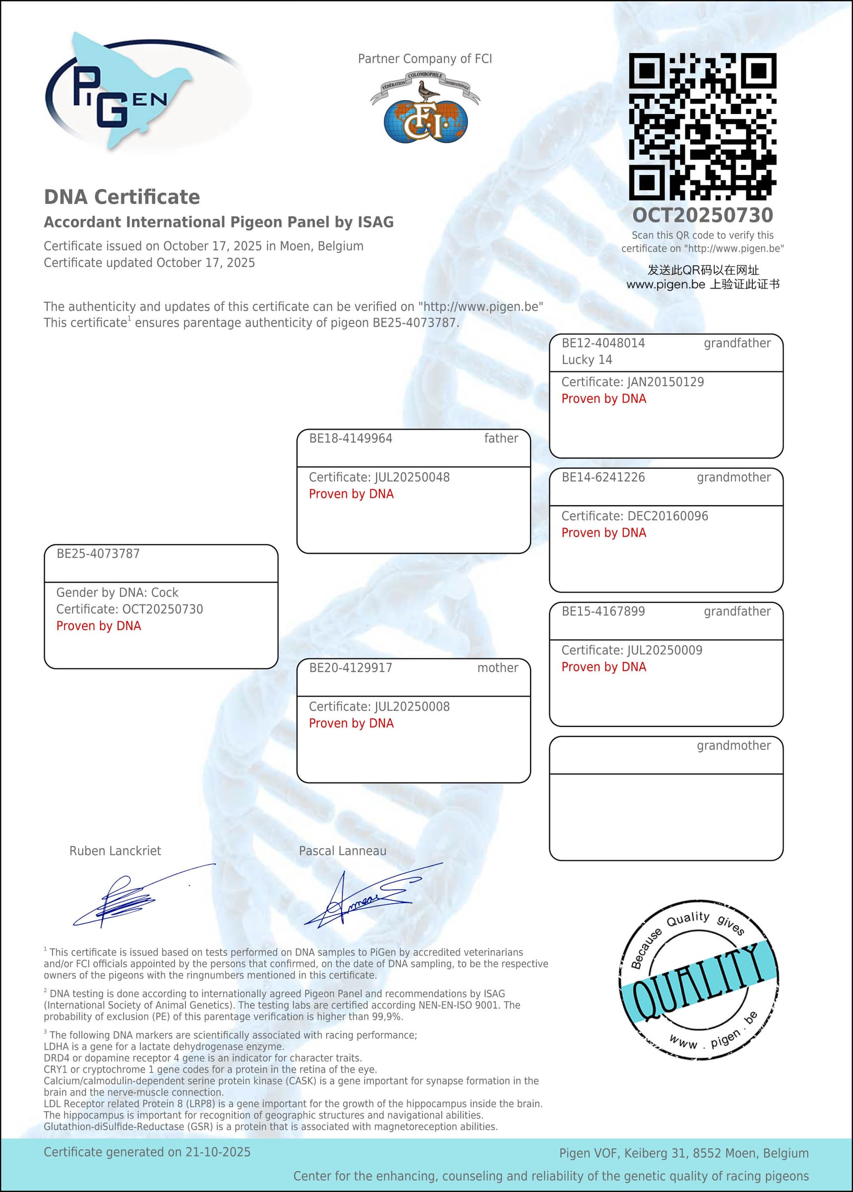 Won: 3rd World Best Pigeon - 13th Nat. ace KBDB