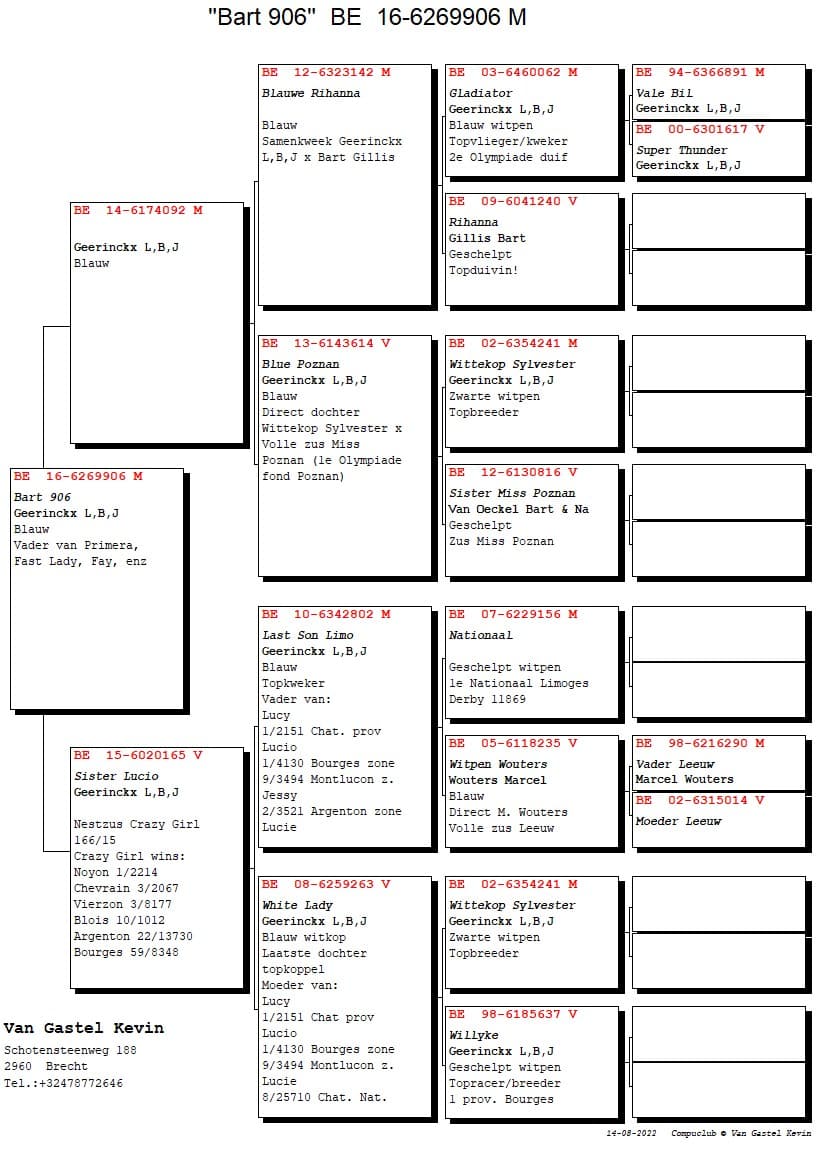 Grandson “Wittekop Sylvester” x “Sister Miss Poznan” (Van Oeckel Bart en Nance)