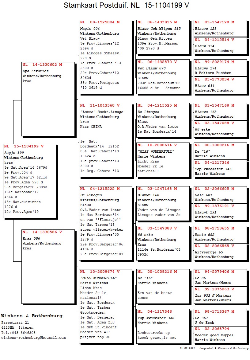 1st Prov. Limoges 1,279b. and is father to “Lotte” (1st Nat. Bordeaux ’14) and “Floortje” (1st Nat. Tarbes ’15)