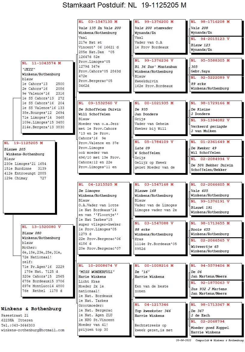 Won 1st Prov. Limoges 1,279b. and is father to “Lotte” (1st Nat. Bordeaux ’14) and “Floortje” (1st Nat. Tarbes ’15)