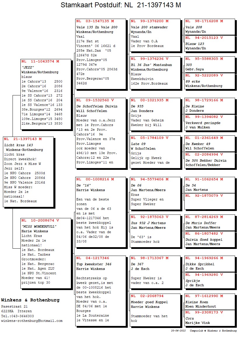 Born out “De 16” (Jan Meers via Harrie Winkens) x “NL04-1217346” (base breeding hen)