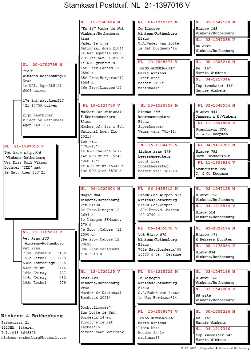 His nest-brother won 5th National Agen ZLU 2021 – 6,808b.- 30th Internat. Agen 17,759b.