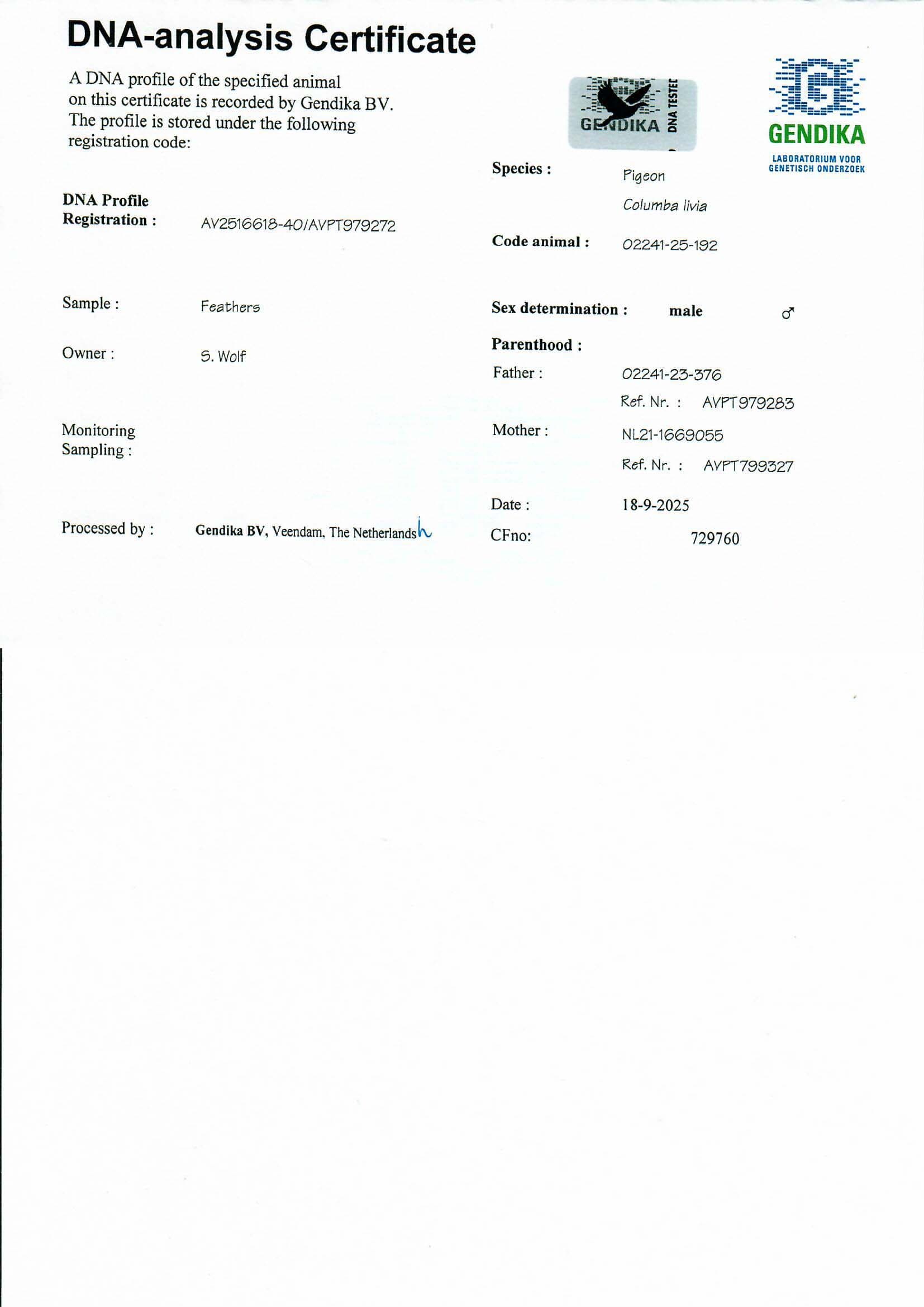 Grandson “Olympic Jozef” NL19-7007134, winner of: