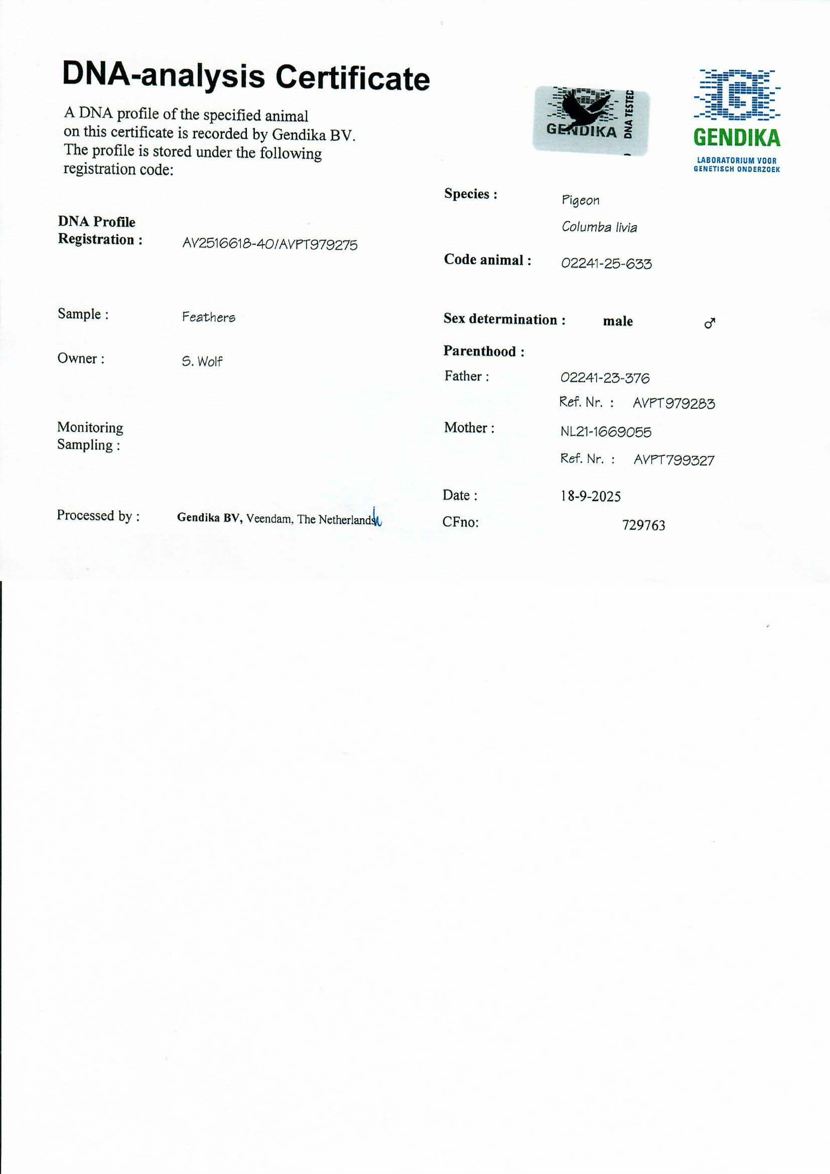 Grandson “Olympic Jozef” NL19-7007134, winner of: