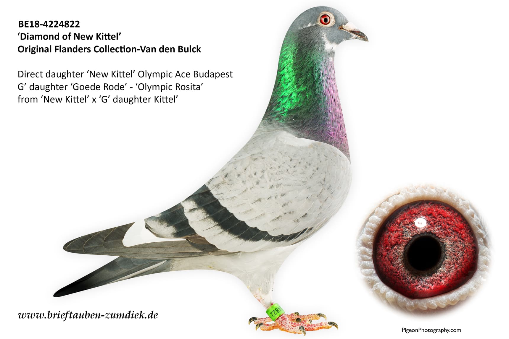 Granddaughter “New Kittel”. “New Kittel” won Olympiad bird Budapest 2014 : 1st/1,371b. – 3rd/1,993b. – 8th/1,571b. – 26th/2,126b.and so on