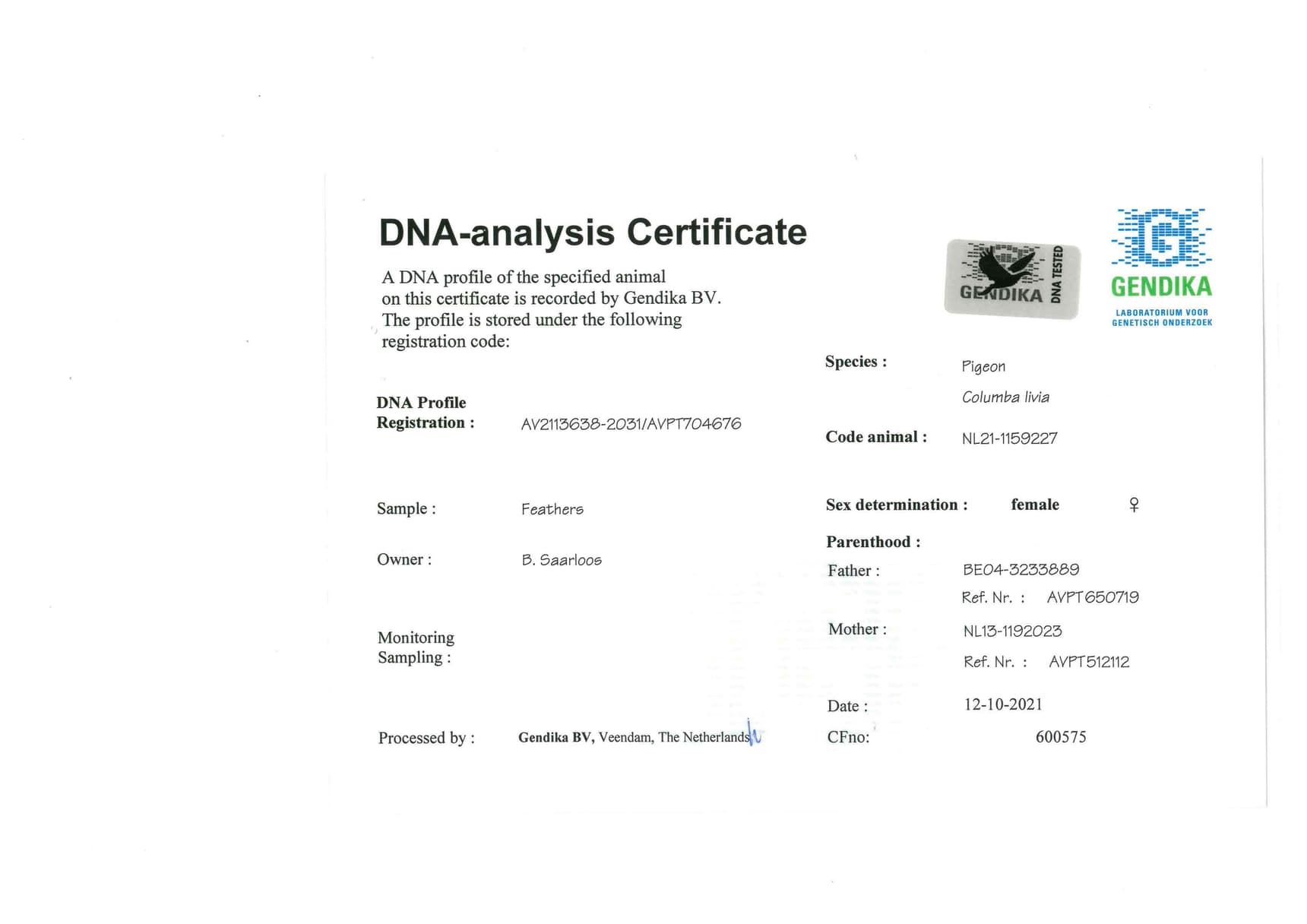 Kweker: A. Saarloos & Zoon 萨尔洛斯父子