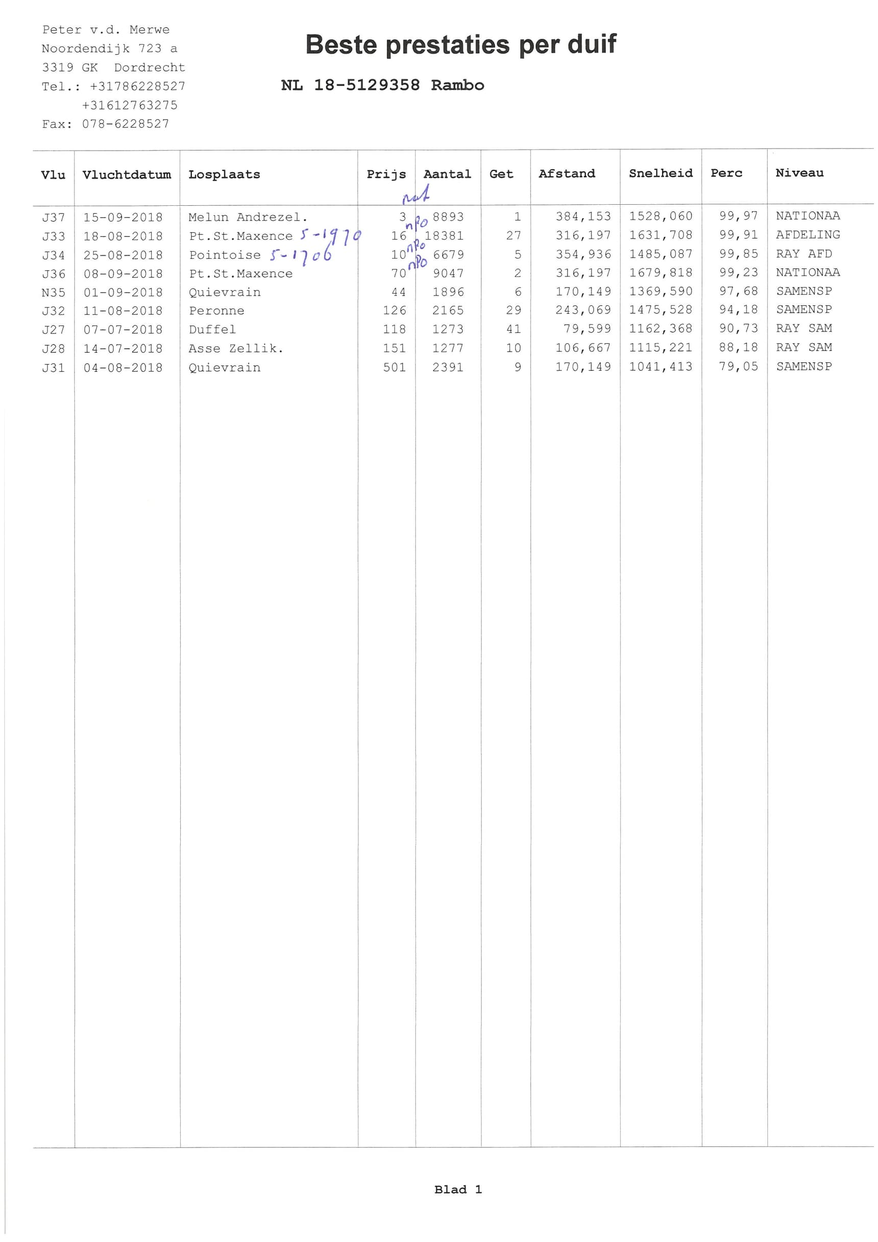 Won (no doubles): 9 prizes as a youngbirds – 7 x 1/10 - 4 x 1/100