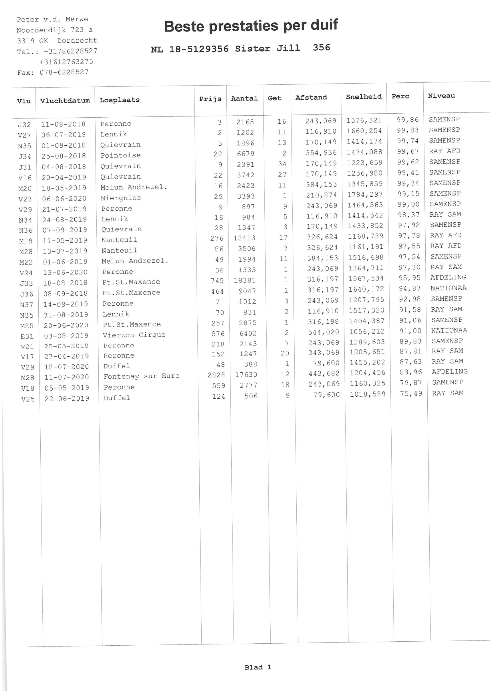 - 3 x 1st – Goovaerts Jozef ) x “Gastons Princes”