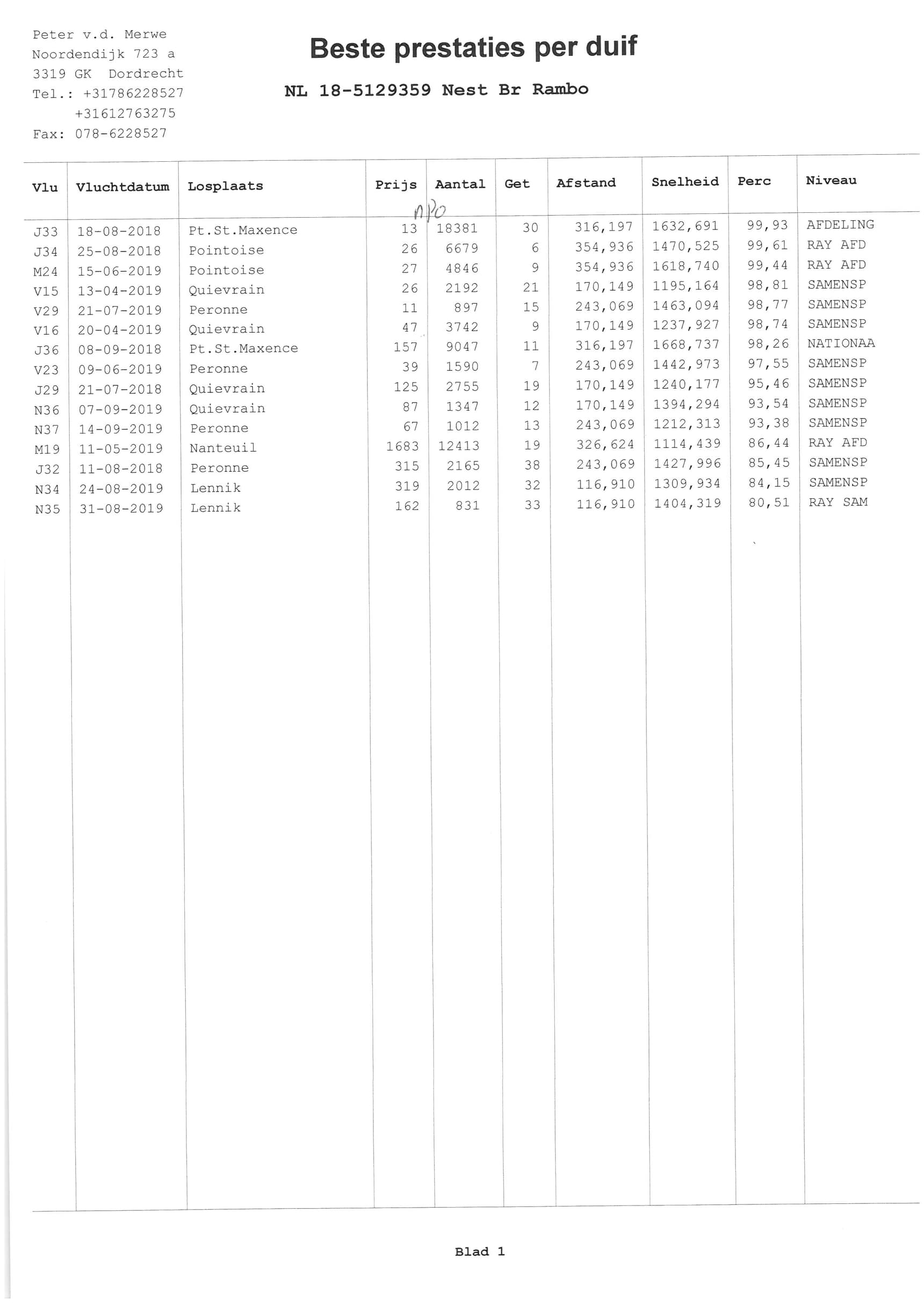 “Rambo” won (no doubles): 9 prizes as a youngbirds