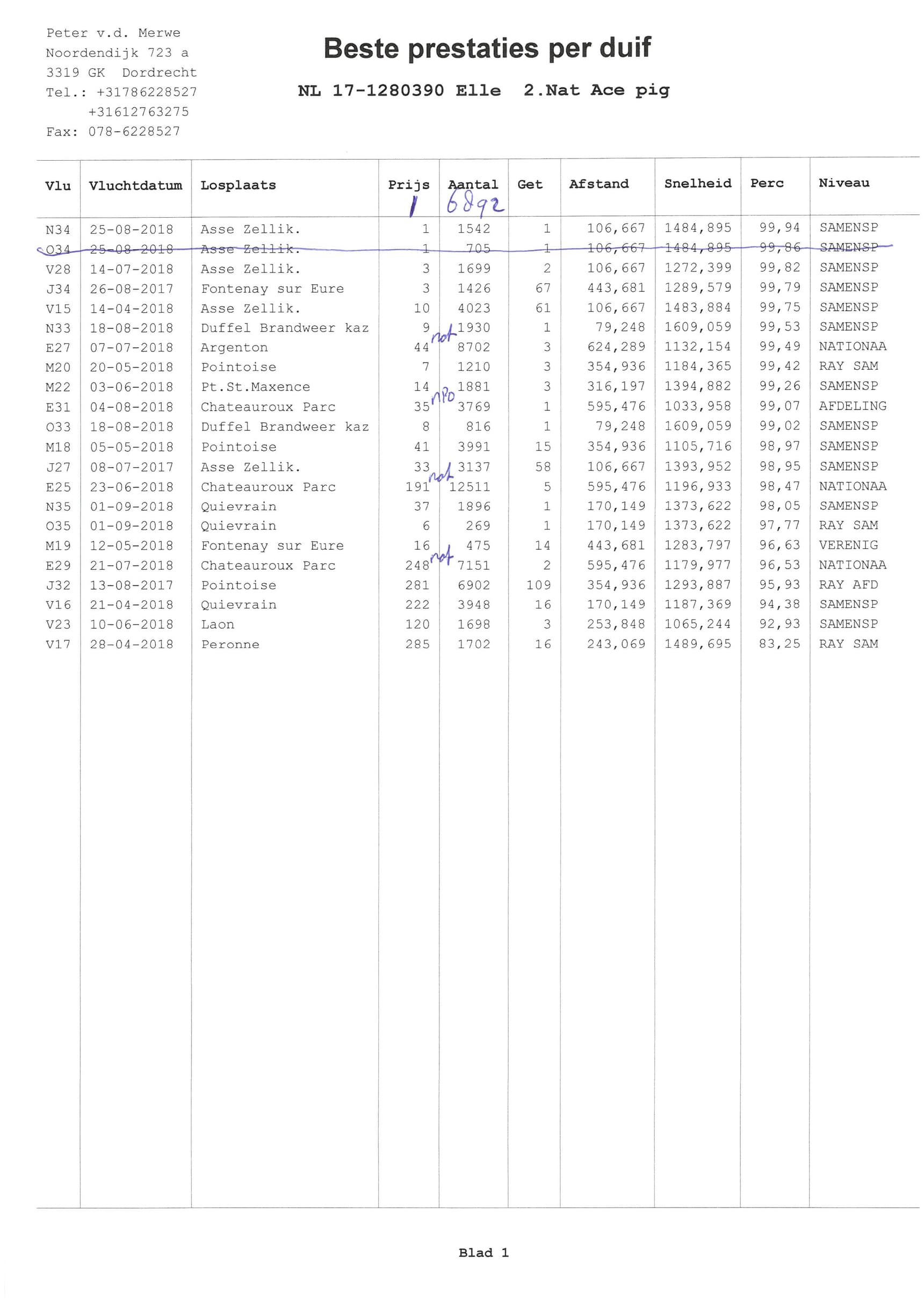 2nd National ace old birds allround Pipa Ranking 2018