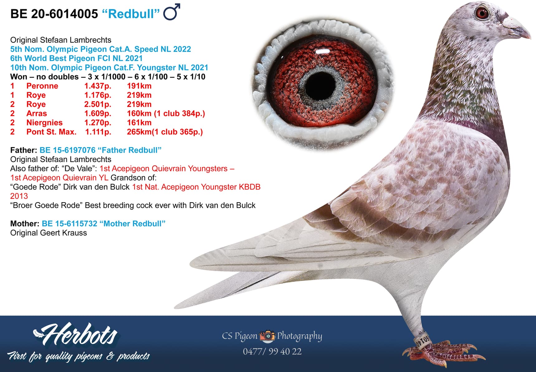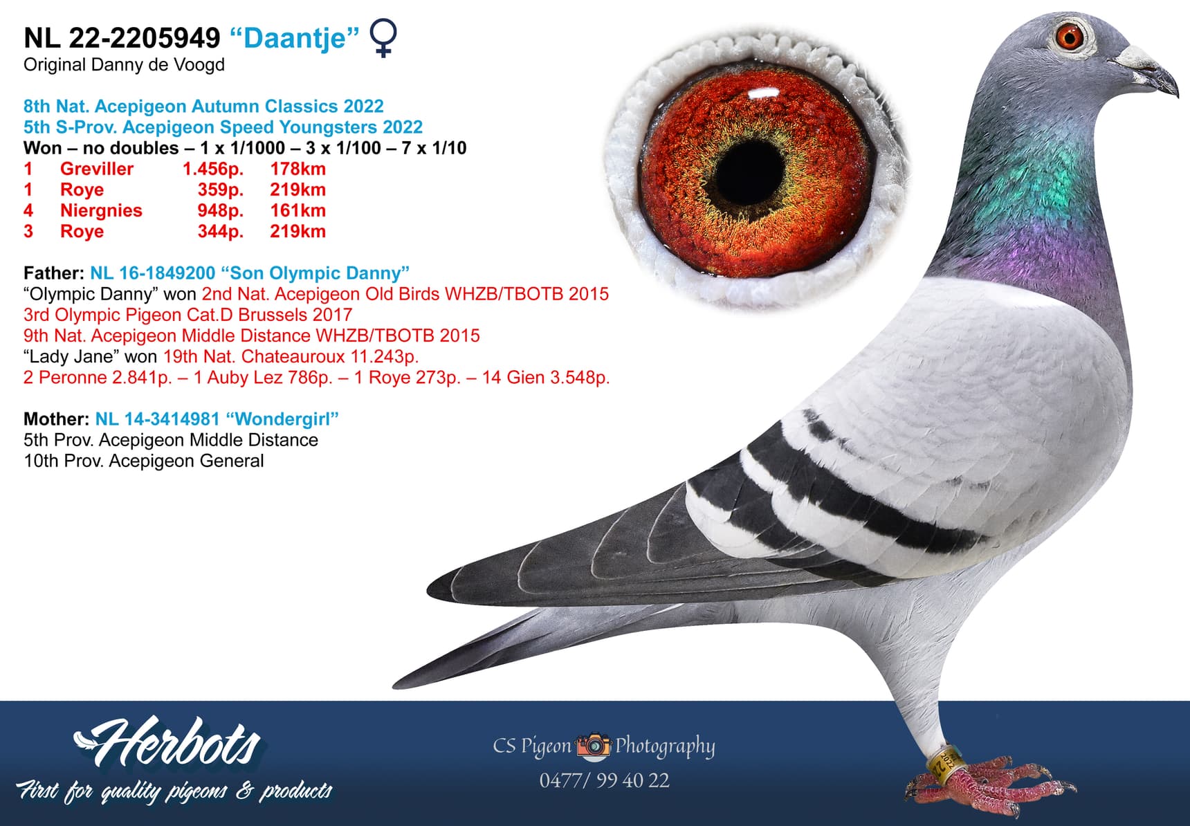 After much deliberation and a good conversation with a fellow fancier, Danny decided to auction off his top birds older than 2024. This gives the Herbots family an exclusive and unique insight into his exceptional loft stock.