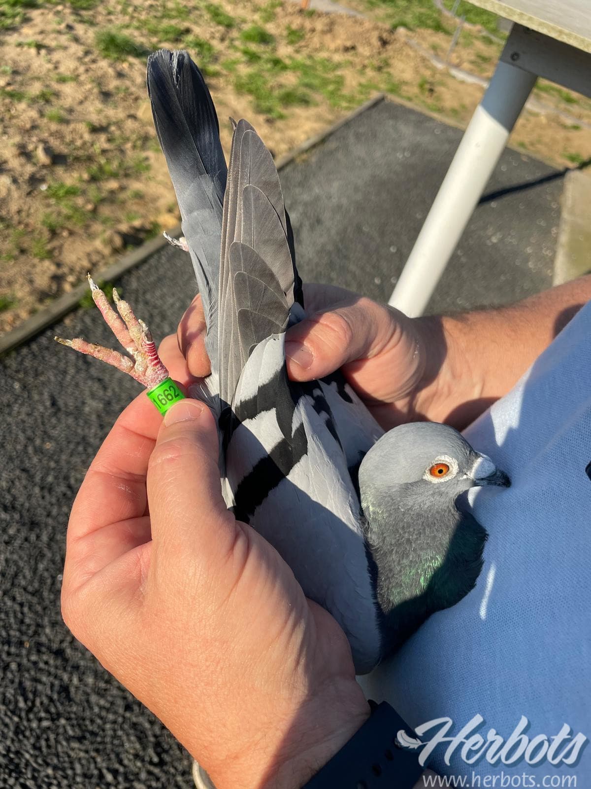The winner is a rather small blue cock, very soft of feathers, a nice whole as a pigeon and also with a very good character. This means a pigeon that only stands out positively: he listens well, trains well, eats well and always sits nicely stroked with a striking charisma or appearance. He does not have this charisma from strangers, his parents too are very striking pigeons with a lot of charisma.