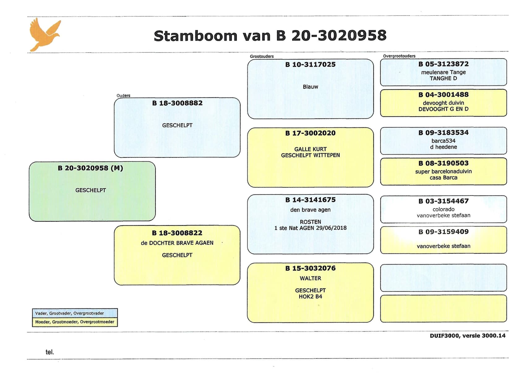 B20-3020958 雄,晚生鸽图勒全国9763羽成鸽组冠军