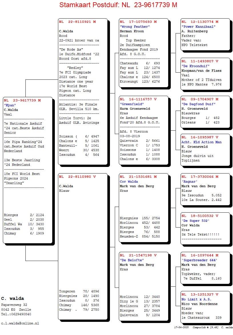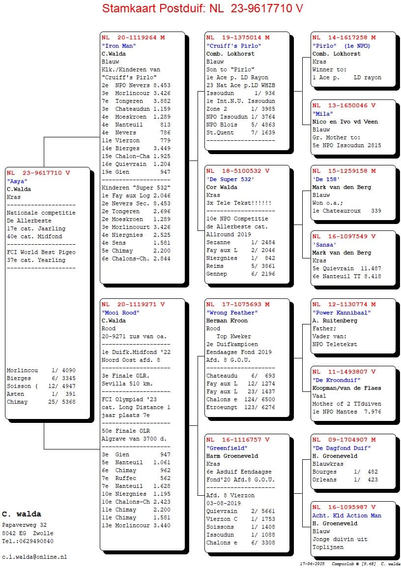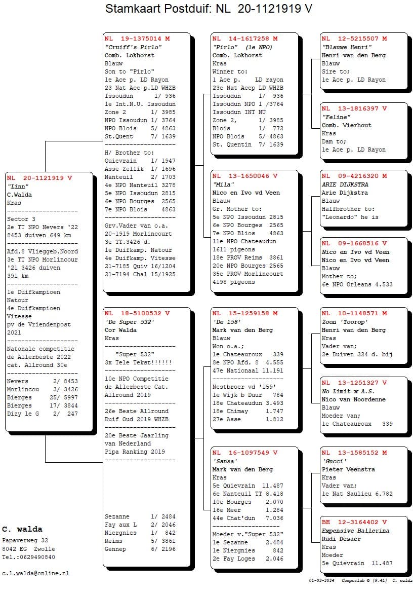 One of the strongest lofts of the Netherlands in 2024, we can count Cor Walda without any doubt. Week after week he achieved great results and/or series and under his pans are currently some real top birds. His achievements are the result of sharp selection and iron discipline.