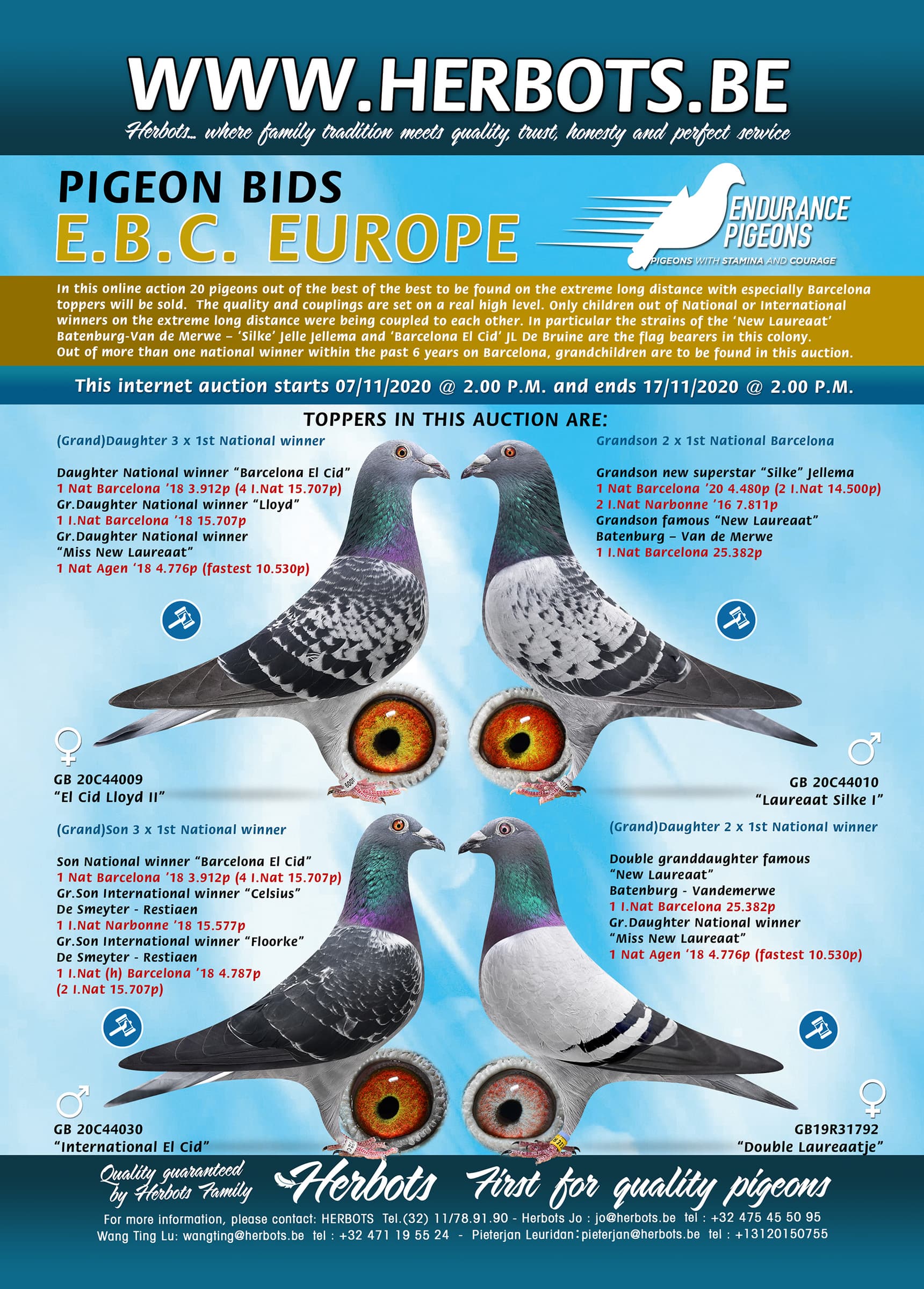 Also in Barcelona there was a special winner namely ‘Jef’ from Stijn & Jeroen Rans. A classful pigeon that proved himself on the extreme long distance and left in 2019 the competitors one and a half hour behind. This was something that was noticed by Hugo Batenburg and he moved to Holland which was a signal for England to go for this new top pigeon and to buy children out of him.