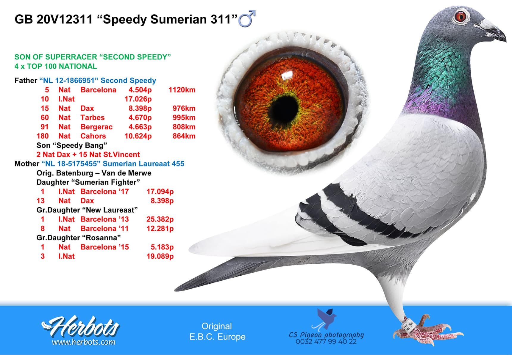 The purchase of “Second Speedy” isn’t only aiming for one day flies that only shine on Barcelona but this one also won 5th National Barcelona 4,504b – 15th National Dax 8,398b – 60th National Tarbes 4,670b and 91st National Bergerac 4,663b.